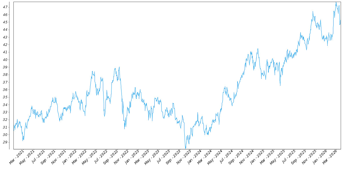 The following graph sets forth the daily historical performance of the XLU in the period from January 2, 2021 through the pricing date. We obtained this historical data from Bloomberg L.P. We have not independently verified the accuracy or completeness of the information obtained from Bloomberg L.P. On the pricing date, the Closing Market Price of the XLU was $45.33.