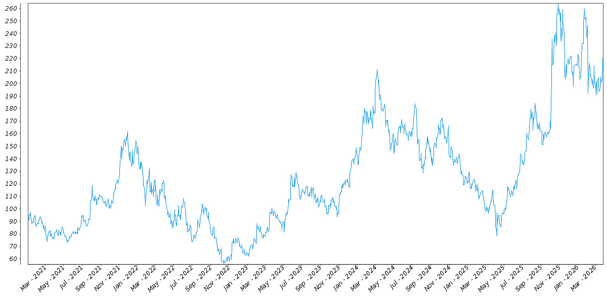 The following graph sets forth the daily historical performance of AMD in the period from January 2, 2021 through the pricing date. We obtained this historical data from Bloomberg L.P. We have not independently verified the accuracy or completeness of the information obtained from Bloomberg L.P. The Closing Market Prices reflected in the graph below may have been adjusted to reflect certain corporate actions, such as stock splits and reverse stock splits. On the pricing date, the Closing Market Price of AMD was $203.77.