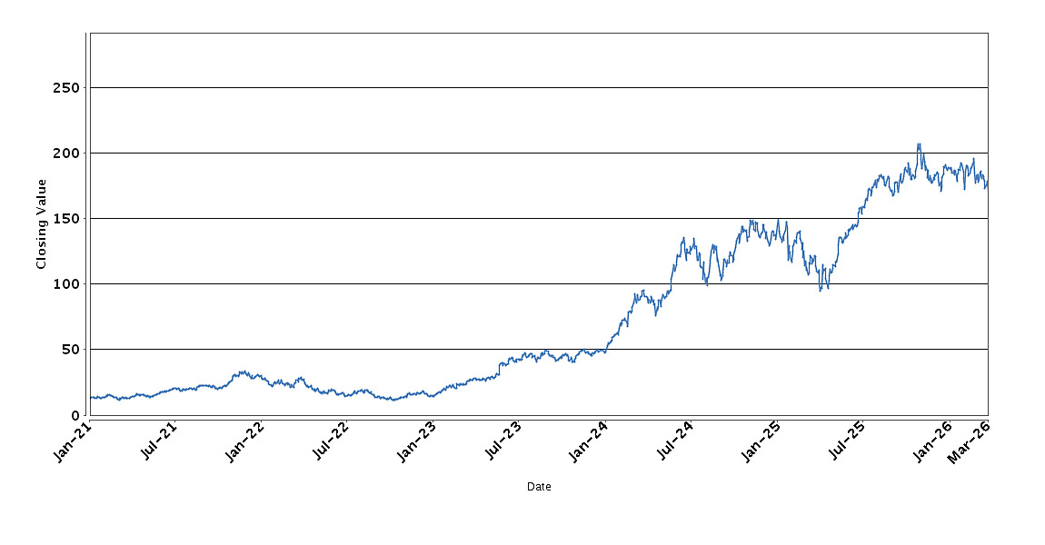 The graph below sets forth the historical performance of NVIDIA Corporation based on the daily Closing Value from January 4, 2021 through March 26, 2026. We obtained the Closing Values shown in the graph below from Bloomberg. We have not independently verified the accuracy or completeness of the information obtained from Bloomberg. These historical closing values may have been adjusted to reflect certain corporate actions such as stock splits and reverse stock splits.