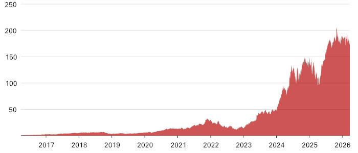 The following graph sets forth the historical performance of NVDA based on the daily historical closing values from March 29, 2016 through March 27, 2026. We obtained the closing values below from the Bloomberg Professional® service. We have not undertaken any independent review of, or made any due diligence inquiry with respect to, the information obtained from the Bloomberg Professional® service.![]() |