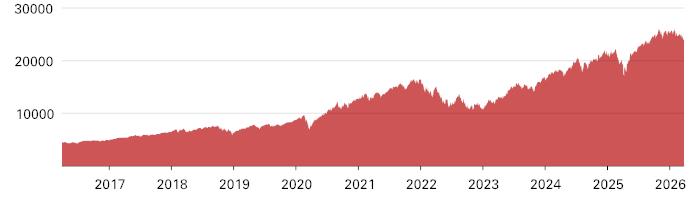 The following graph sets forth the historical performance of the NDX based on the daily historical closing values from March 29, 2016 through March 27, 2026. We obtained the closing values below from the Bloomberg Professional® service. We have not undertaken any independent review of, or made any due diligence inquiry with respect to, the information obtained from the Bloomberg Professional® service.![]() |