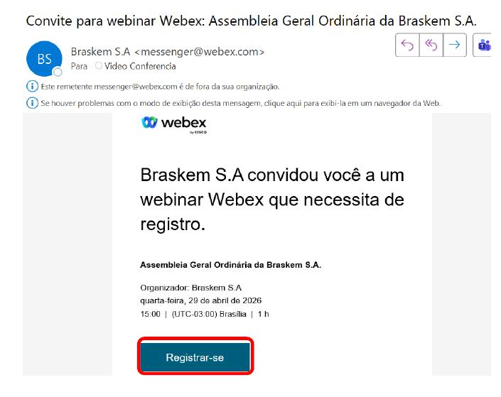 In order to have access to the Meeting, Shareholders must request an access link to the Meeting via email to braskem-ri@braskem.com, by April 27, 2026. The request must be accompanied by the necessary documents to participate in the meeting. Meeting, which were duly indicated in the Call Notice, in the Management Proposal and in this Manual for Participation in the Meeting.