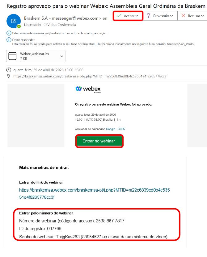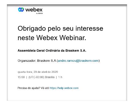 The Shareholders that wish to participate in the Meeting must send to e-mail address braskem-ri@braskem.com, with a request for receipt confirmation, at least 2 days in advance of the date scheduled for the Meeting, that is, by April 27, 2026, a simple copy of the original counterparts of the following documents: