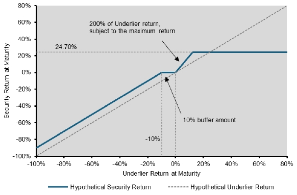 | n | If the value of the Underlier decreases by more than the buffer amount, you will receive less than the face amount and have 1-to-1 downside exposure to the decrease in the value of the Underlier in excess of the buffer amount |