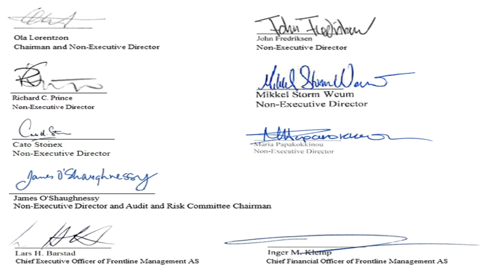 Chief Executive Officer of Frontline Management AS