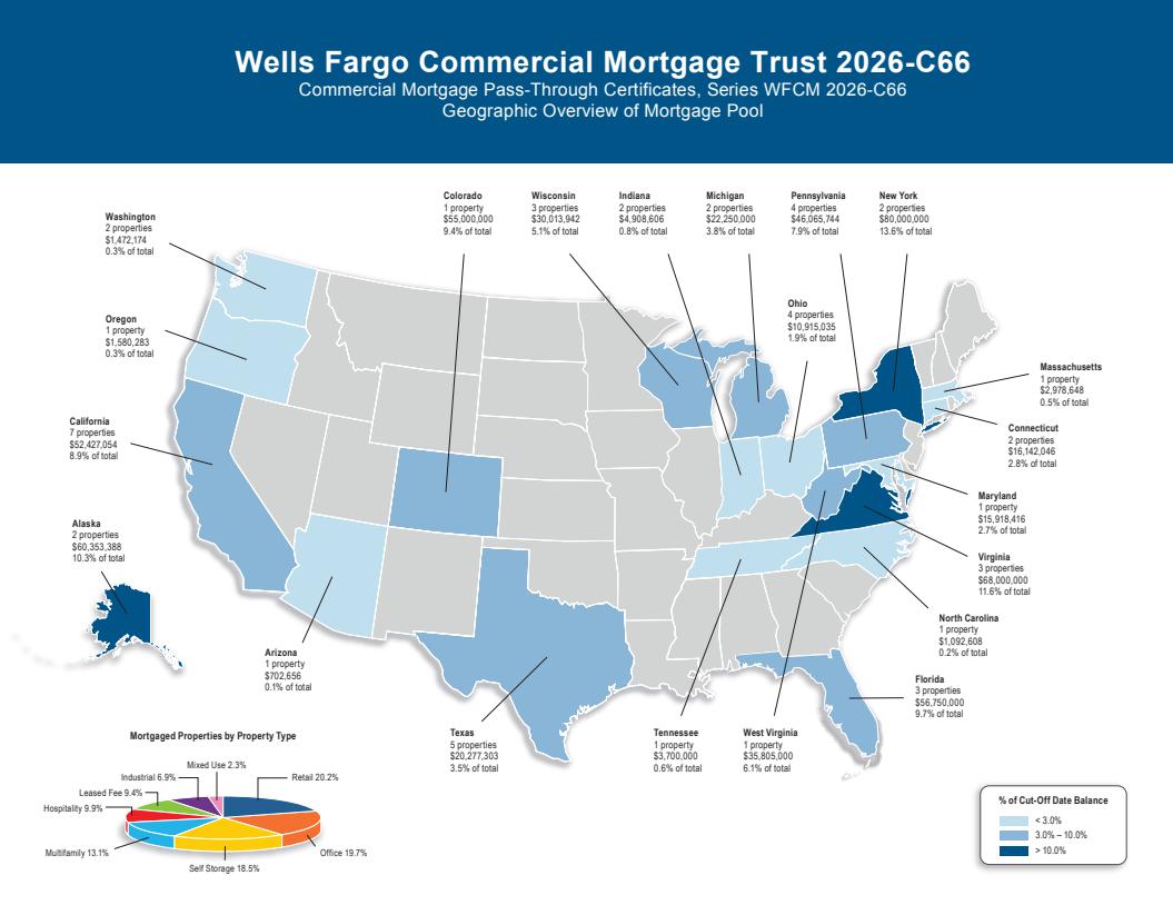 Wells Fargo Commercial Mortgage Securities, Inc. is offering certain classes of the Commercial Mortgage Pass-Through Certificates, Series 2026-C66 consisting of the certificate classes identified in the table below. The certificates being offered by this prospectus (and the non-offered Class X-D, Class D, Class E-RR, Class F-RR, Class G-RR, Class H-RR, Class V and Class R certificates) represent the beneficial ownership interests in the issuing entity, which will be a New York common law trust named Wells Fargo Commercial Mortgage Trust 2026-C66. The assets of the issuing entity will primarily consist of a pool of fixed-rate commercial mortgage loans, which are generally the sole source of payments on the certificates. Credit enhancement will be provided solely by certain classes of subordinate certificates that will be subordinate to certain classes of senior certificates as described under “Description of the Certificates—Subordination; Allocation of Realized Losses”. Each class of certificates will be entitled to receive monthly distributions of interest and/or principal on the 4th business day following the 11th day of each month (or if the 11th day is not a business day, the next business day), commencing in May 2026. The rated final distribution date for the certificates is the distribution date in April 2059.