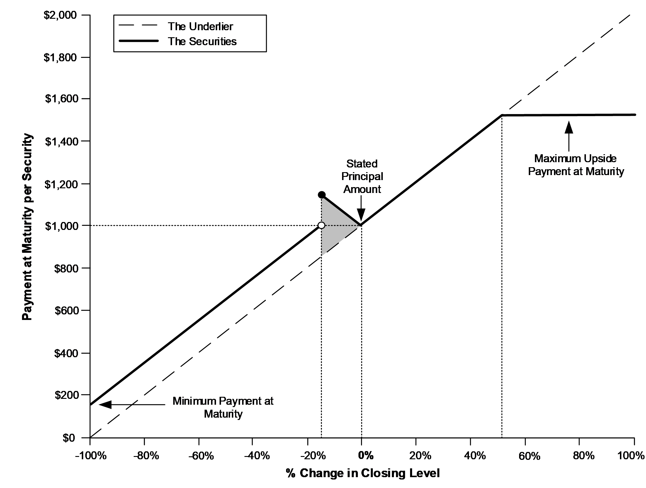 oIf the underlier appreciates 100%, investors will receive only the maximum upside payment at maturity of $1,520 per security, or 152% of the stated principal amount.
