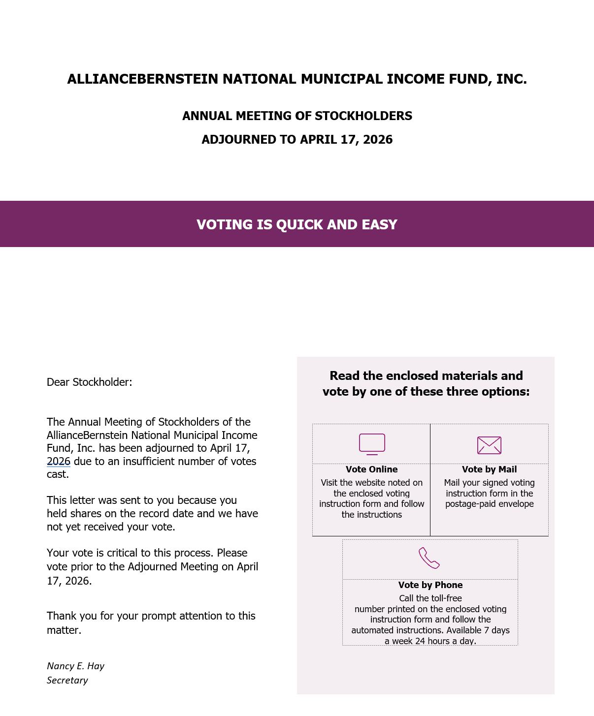 | AllianceBernstein National Municipal Income Fund, Inc. | |