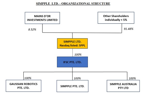 We conduct our business through three subsidiaries, namely IFSC Pte. Ltd. (“IFSC”), SIMPPLE Pte. Ltd. (“SIMPPLE Pte Ltd”), and Gaussian Robotics Pte. Ltd. (“Gaussian Robotics” or “GS”). IFSC is a wholly owned subsidiary of the issuer; and SIMPPLE Pte. Ltd., and GS are wholly owned by IFSC. All three of our subsidiaries are Singapore companies. See “Prospectus Summary – Our Corporate Structure and History.”