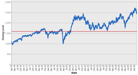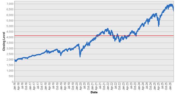 | S&P 500® Index – Historical Closing Levels* January 4, 2016 to March 27, 2026 |