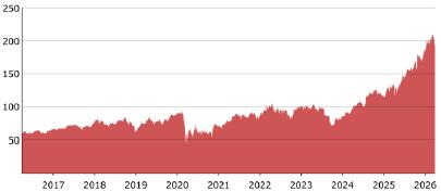 The following graph sets forth the historical performance of RTX based on the daily historical closing values from March 27, 2016 through March 27, 2026. We obtained the closing values below from the Bloomberg Professional® service. We have not undertaken any independent review of, or made any due diligence inquiry with respect to, the information obtained from the Bloomberg Professional® service.