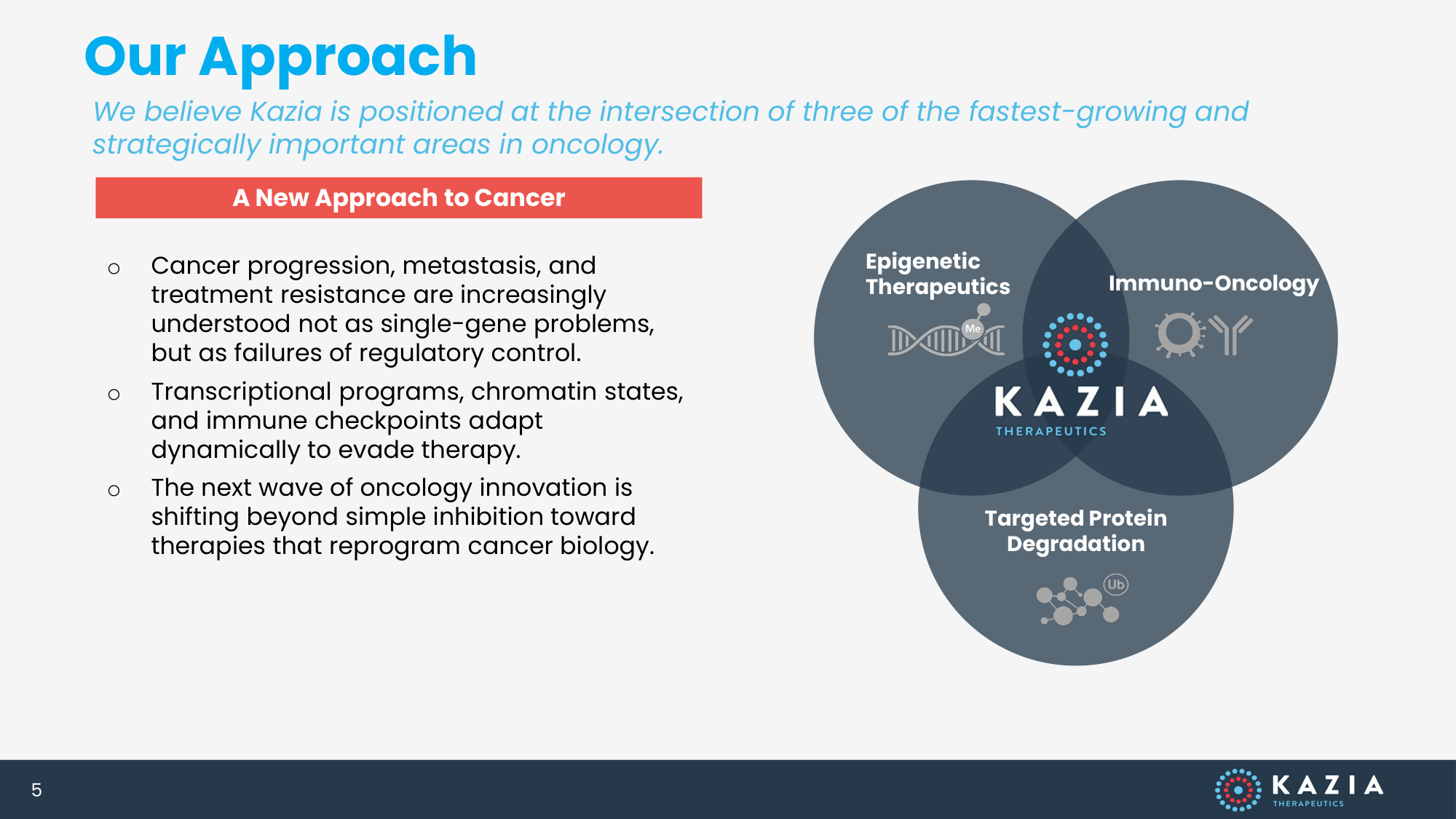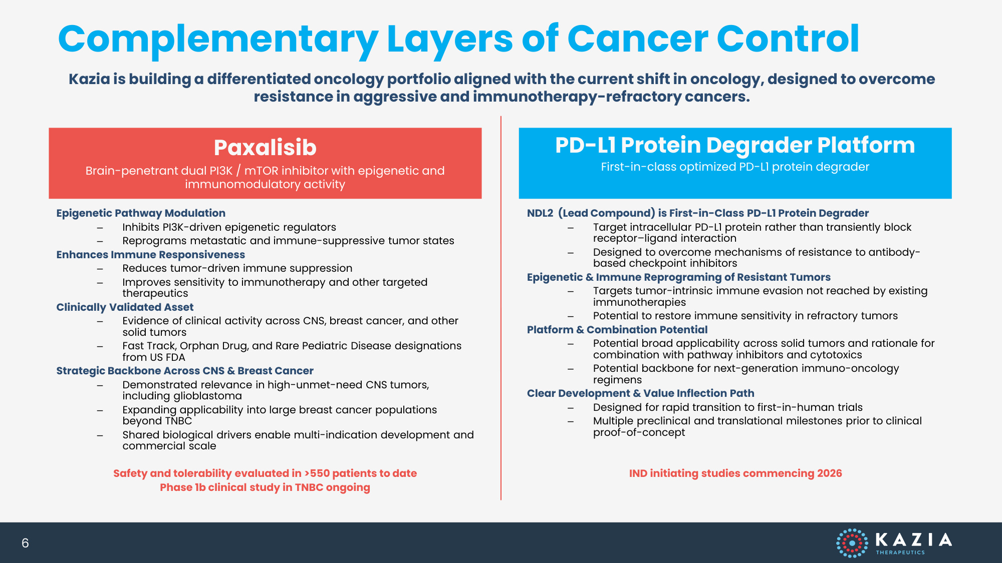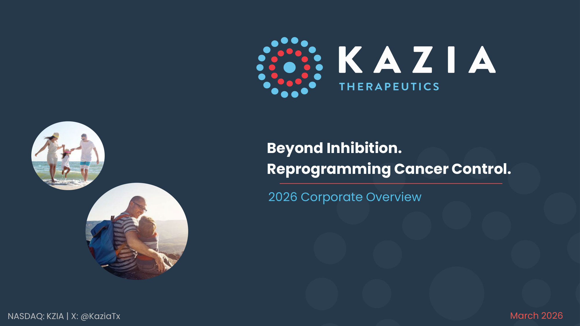 NASDAQ: KZIA | X: @KaziaTx Beyond Inhibition. Reprogramming Cancer Control. 2026 Corporate Overview March 2026