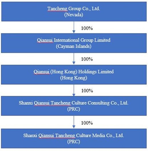 Tancheng Group Co., Ltd. is a Nevada incorporated holding company with no material operations of its own. We conduct our operations primarily in China through our PRC subsidiary Qiansui Media. Tancheng Group indirectly owns all of the equity interests of Qiansui Media, through offshore intermediate holding companies (namely Cayman-incorporated Qiansui International, and Hong Kong-incorporated Qiansui HK).