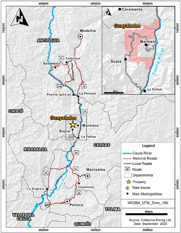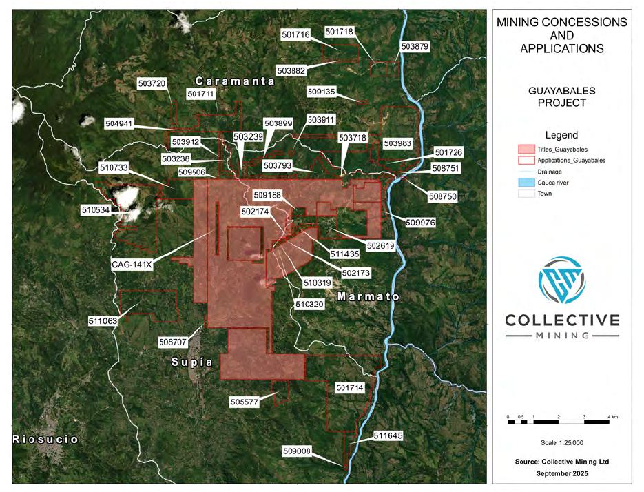 Collective is a Canadian company listed on the TSX (the “TSX”) and the NYSE American LLC (“NYSE American”) under the symbol “CNL”. The Company’s long-term focus is on the acquisition, exploration, development and exploitation of mineral properties in which the Company’s exploration, development and operating expertise could substantially enhance shareholder value. The Company currently has one material exploration project which is the Guayabales project (the “Guayabales Project”) located in the Caldas department of Colombia. The Company also owns the San Antonio project also located in a historical gold district in the Caldas department of Colombia (the “San Antonio Project” and, together with the Guayabales Project, the “Colombia Projects”), however, the focus of the Company is on the Guayabales Project, which is currently its only material project. As at the date of this AIF, the Company has made a significant gold, copper, silver and tungsten discovery called the Apollo system, made other earlier stage discoveries such as the Trap target and generated a number of other targets at the Guayabales Project.
