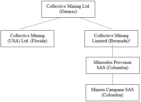 In this annual information form (“AIF” or “Annual Information Form”), unless the context otherwise requires, “Collective” refers to Collective Mining Ltd.; the “Bermuda Subsidiary” refers to Collective Mining Limited (Bermuda), the “Branch” refers to Collective Mining Limited Sucursal, a Colombian branch (Colombia); “Minerales Provenza” refers to the Company’s subsidiary Minerales Provenza S.A.S. (Colombia); “Minera Campana” refers to the Company’s subsidiary Minera Campana S.A.S. (Colombia); “Collective Mining (USA)” refers to Collective Mining (USA) Ltd. (Florida) and the “Company” refers to Collective Mining Ltd. and its subsidiaries.
