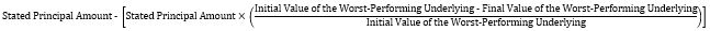 for each Note that you hold a Payment at Maturity that is less than the Stated Principal Amount of each Note that will equal: