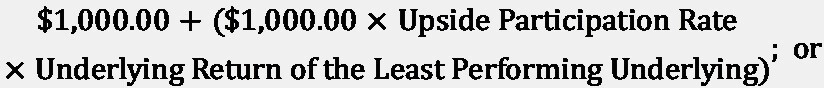 If the Notes have not been automatically called prior to maturity, the Redemption Amount per $1,000.00 in principal amount of Notes will be: a) If the Ending Value of the Least Performing Underlying is greater than or equal to its Redemption Barrier: