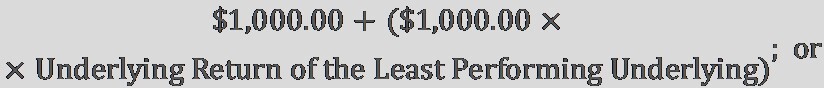 If the Notes have not been automatically called prior to maturity, the Redemption Amount per $1,000.00 in principal amount of Notes will be: a) If the Ending Value of the Least Performing Underlying is greater than or equal to its Redemption Barrier: