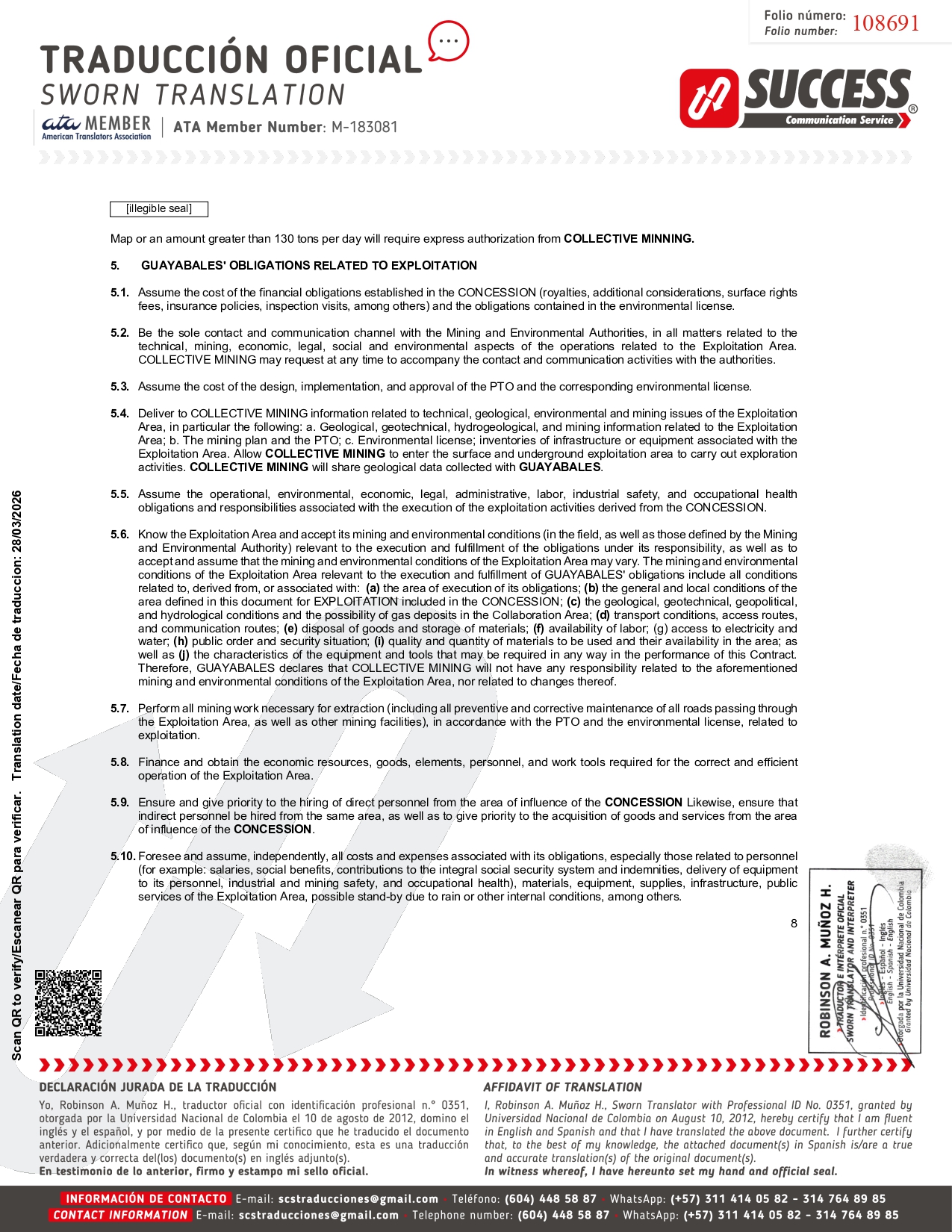 5 108688 Scan QR to verify/Escanear QR para verificar. Translation date/Fecha de traduccion: 28/03/2026