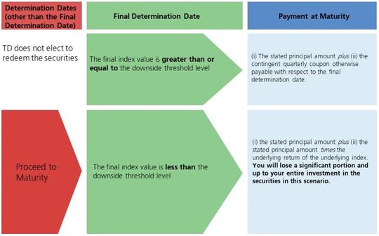 TD may elect at its discretion, on or before any determination date (other than the final determination date), to redeem the securities at its discretion