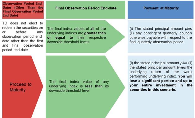 underlying indices on such observation period end-date. If TD elects to redeem the securities prior to maturity, the securities will be redeemed for an amount per security equal to the early redemption payment on the redemption date. No