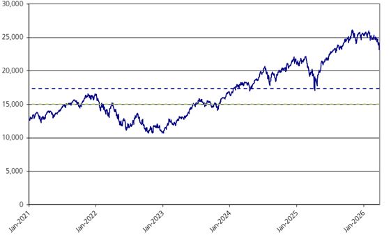 17,349.5775, which is equal to 75.00% of the initial index value of the Nasdaq-100 Index®