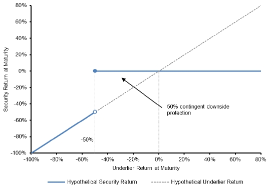 These examples illustrate that you will not participate in any appreciation of the Underlier, but will be fully exposed to a decrease in the Underlier if the ending value is less than the downside threshold value.