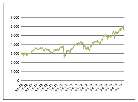 The following graph shows the daily historical performance of the Index in the period from January 1, 2016 through March 30, 2026. We obtained this historical data from Bloomberg Finance L.P. We have not independently verified the accuracy or completeness of the information obtained from Bloomberg Finance L.P. On March 30, 2026, the closing level of the Index was 5,541.79.