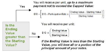 The notes provide you a leveraged return, subject to a cap, if the Ending Value of the Market Measure, which is the EURO STOXX 50® Index (the “Index”), is greater than the Starting Value. If the Ending Value is equal to the Starting Value, you will receive the principal amount of your notes. If the Ending Value is less than the Starting Value, you will lose all or a portion of the principal amount of your notes. Any payments on the notes will be calculated based on the $10 principal amount per unit and will depend on the performance of the Index, subject to our credit risk. See “Terms of the Notes” below.