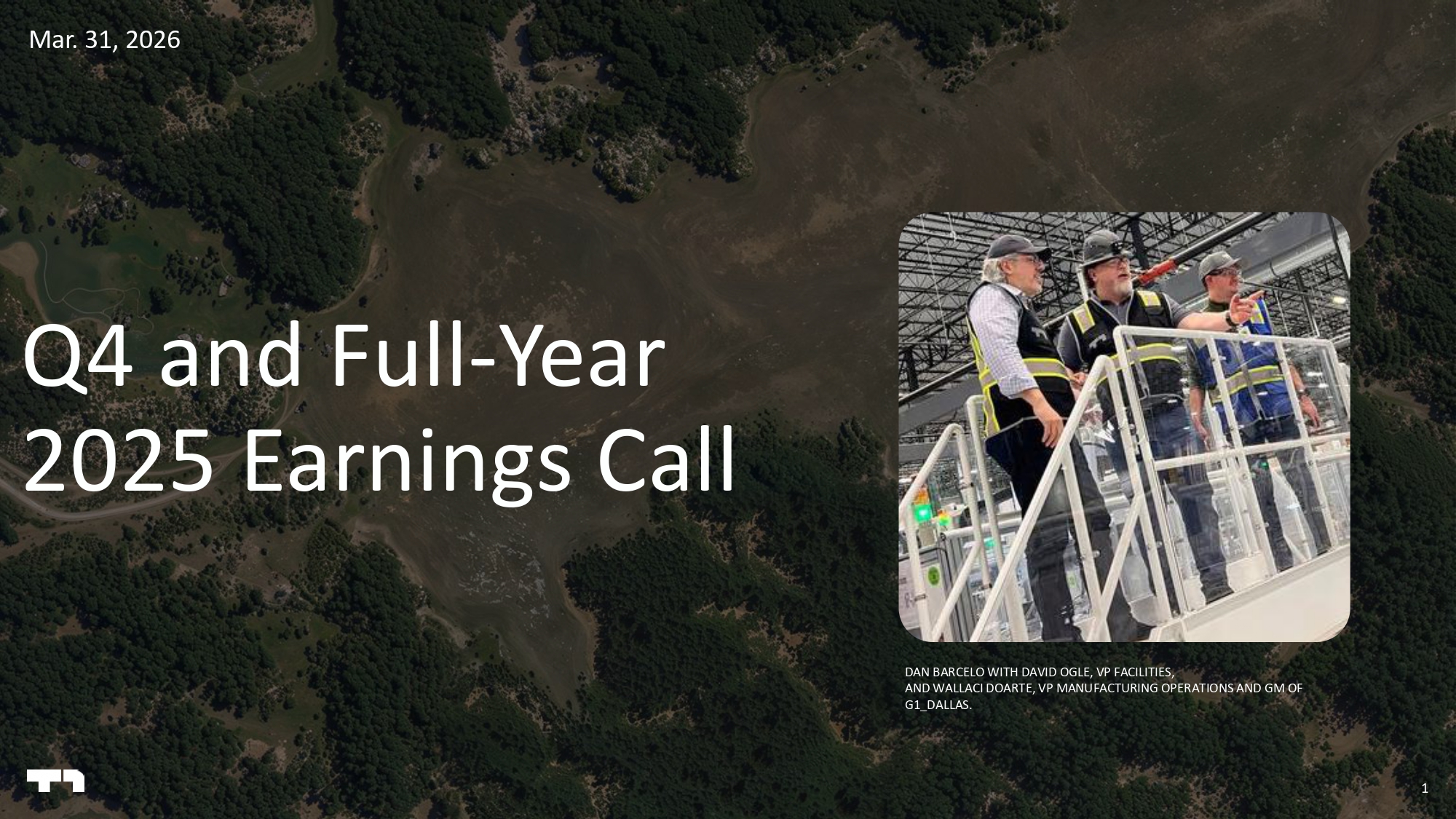 Q4 and Full - Year 2025 Earnings Call Mar. 31, 2026 DAN BARCELO WITH DAVID OGLE, VP FACILITIES, AND WALLACI DOARTE, VP MANUFACTURING OPERATIONS AND GM OF G1_DALLAS. 1 1
