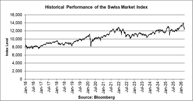The graph below illustrates the daily performance of the Swiss Market Index from January 4, 2016 through March 27, 2026, based on information from Bloomberg, without independent verification. The closing level of the Swiss Market Index on March 27, 2026 was 12,570.26. We obtained the closing levels of the Swiss Market Index above and below from Bloomberg, without independent verification.