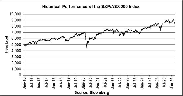 The graph below illustrates the daily performance of the S&P/ASX 200 Index from January 4, 2016 through March 27, 2026, based on information from Bloomberg, without independent verification. The closing level of the S&P/ASX 200 Index on March 27, 2026 was 8,516.277. We obtained the closing levels of the S&P/ASX 200 Index above and below from Bloomberg, without independent verification.
