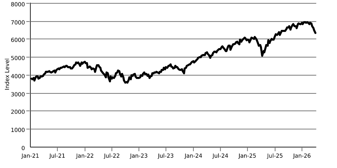 The following graph sets forth the historical performance of the Index based on the weekly historical closing levels of the Index from January 8, 2021 through March 27, 2026.The closing level of the Index on March 27, 2026 was 6,368.85.