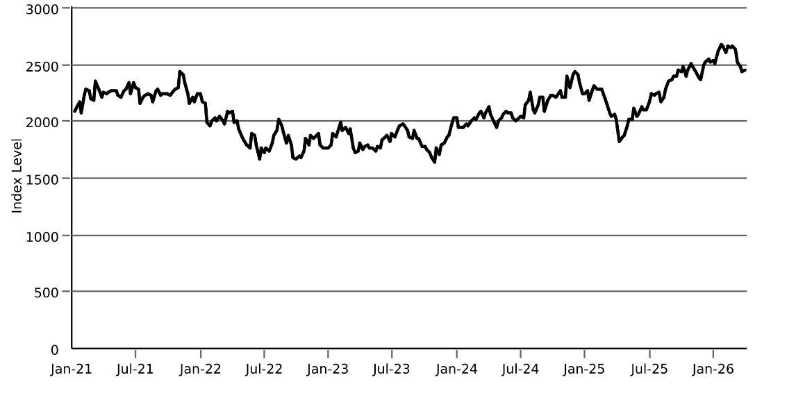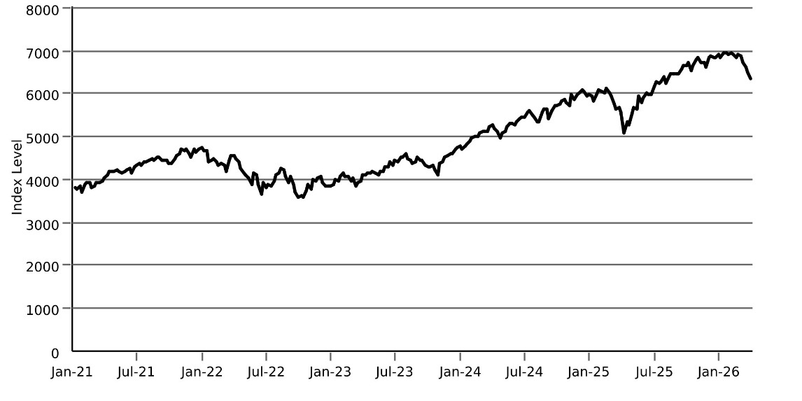 The following graphs set forth the historical performance of each Index based on the weekly historical closing levels from January 8, 2021 through March 27, 2026. The closing level of the Russell 2000® Index on March 27, 2026 was 2,449.695. The closing level of the S&P 500® Index on March 27, 2026 was 6,368.85. We obtained the closing levels above and below from the Bloomberg Professional® service (“Bloomberg”), without independent verification.