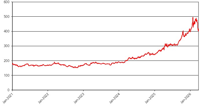 We obtained the information regarding the historical performance of the Reference Asset in the graph below from Bloomberg, without independent review or verification. The graph below illustrates the performance of the Reference Asset from January 1, 2021 through March 30, 2026.
