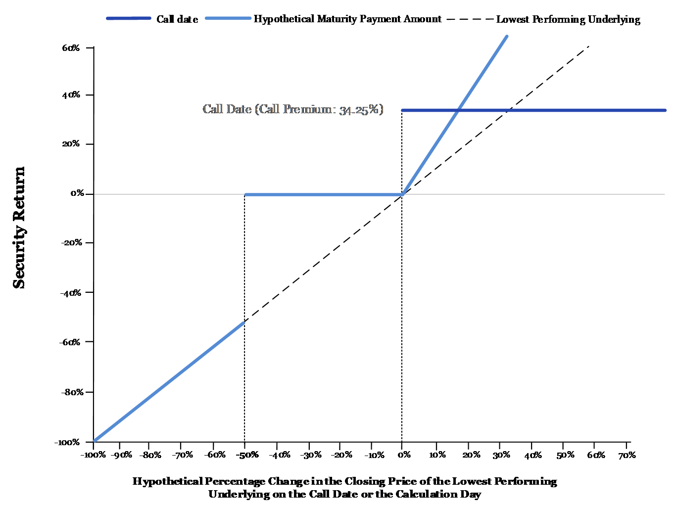 At least $1,342.50 per security which corresponds to a call premium of 34.25% of the face amount (to be determined on the pricing date) |