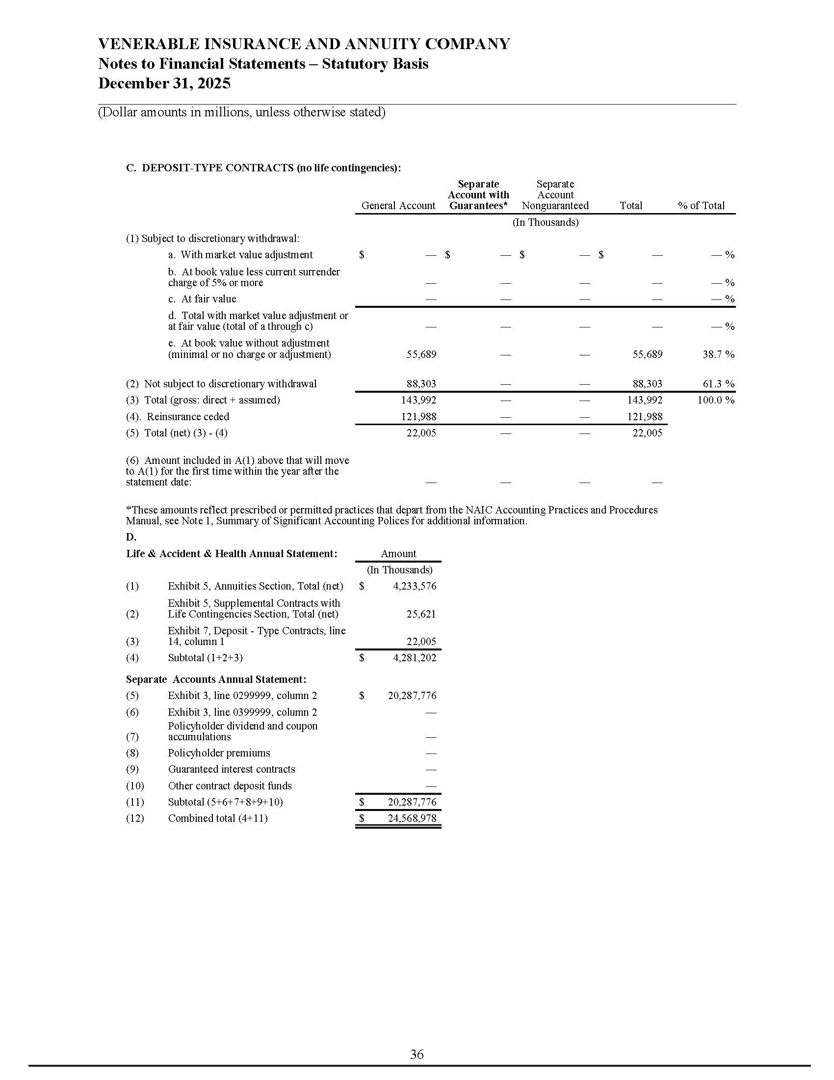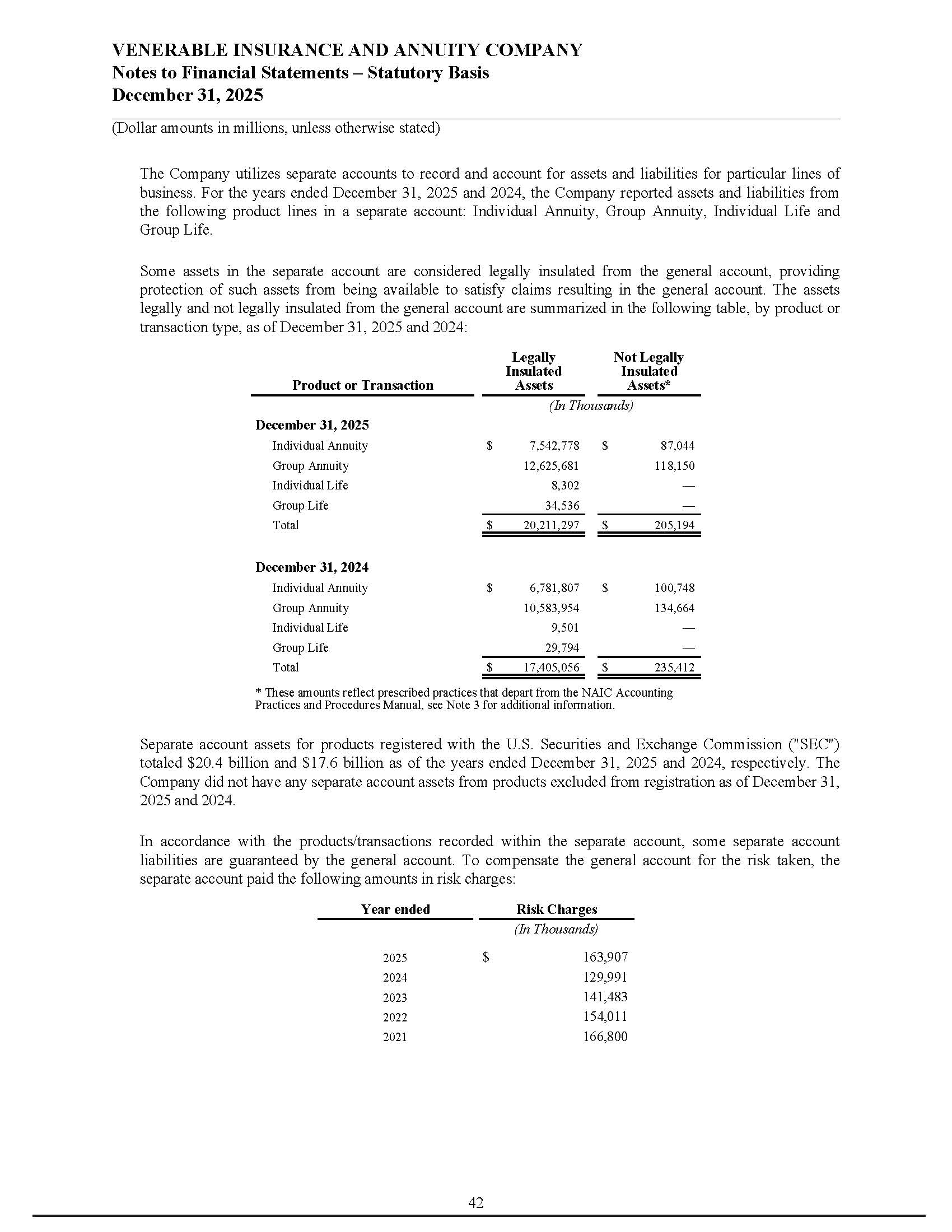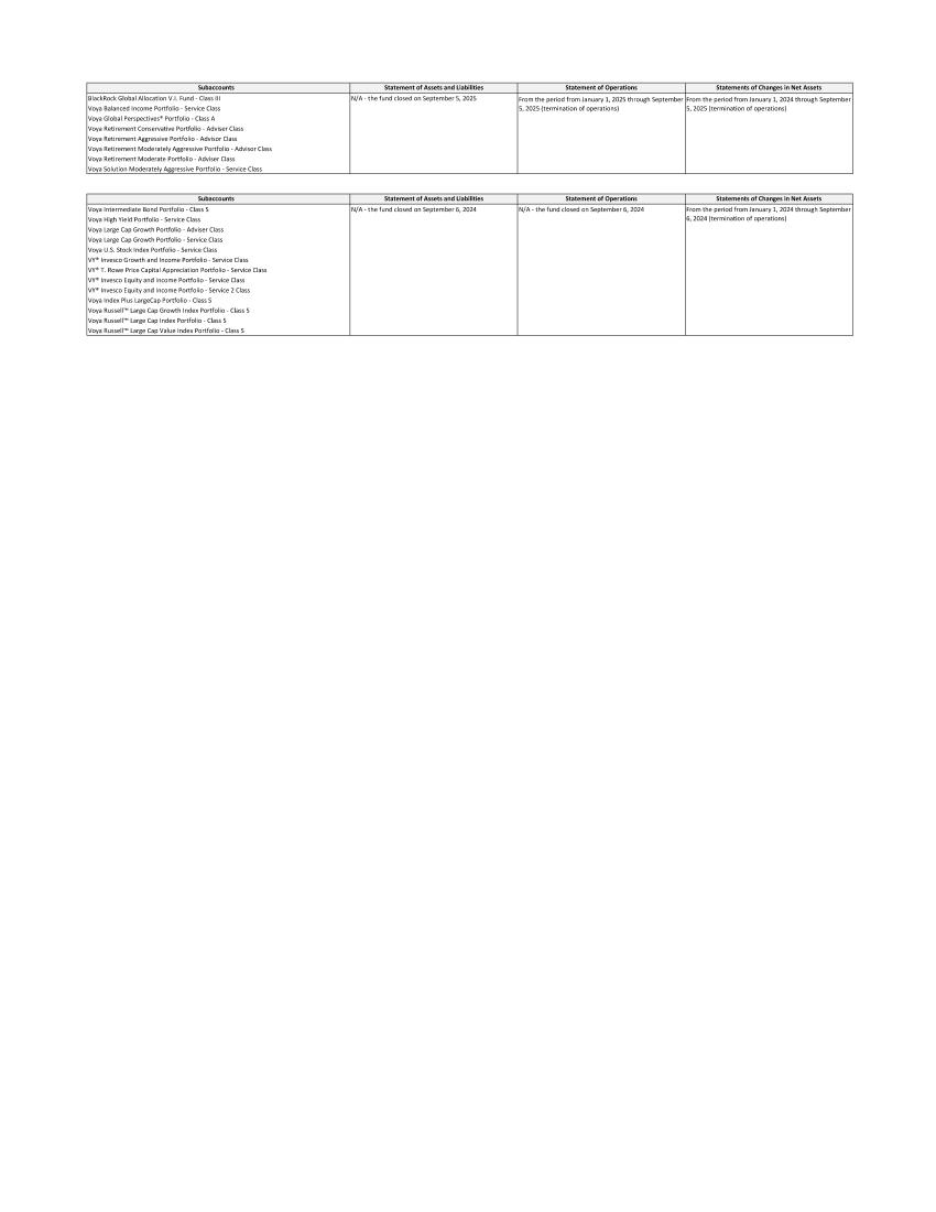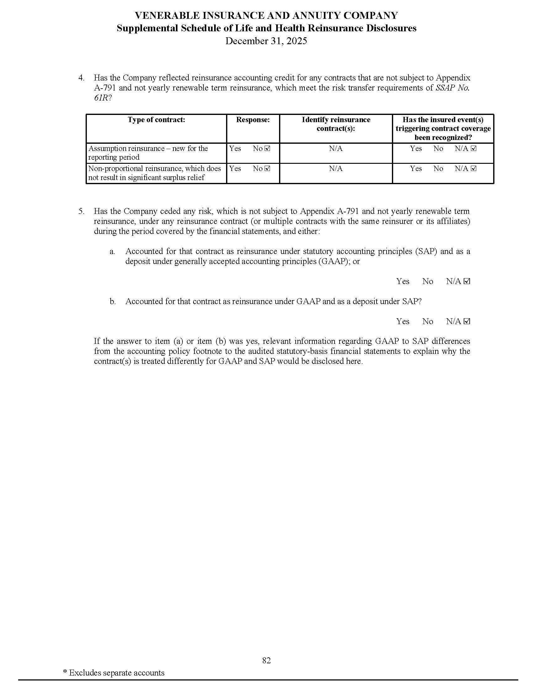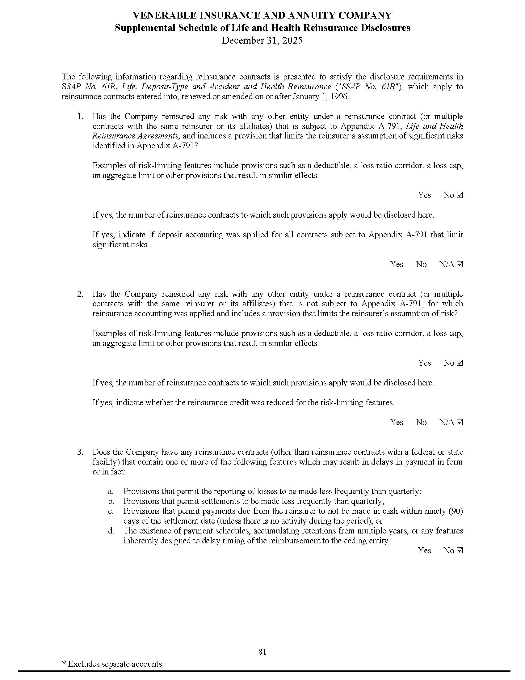 | (c) | As the account had no investments in the investment Division until 2025, this data is not meaningful and is therefore not presented. See Note 1 for additional information on the Novation. |