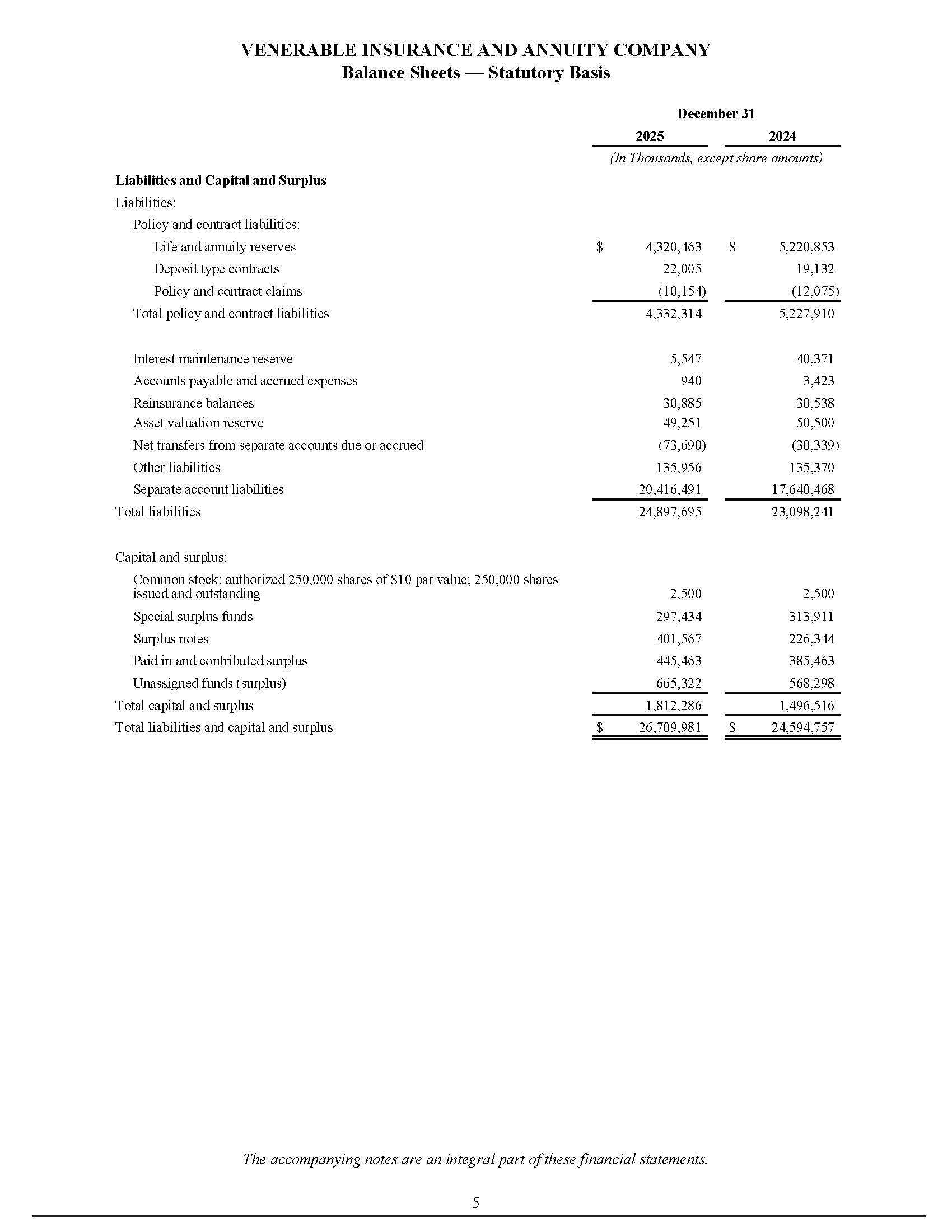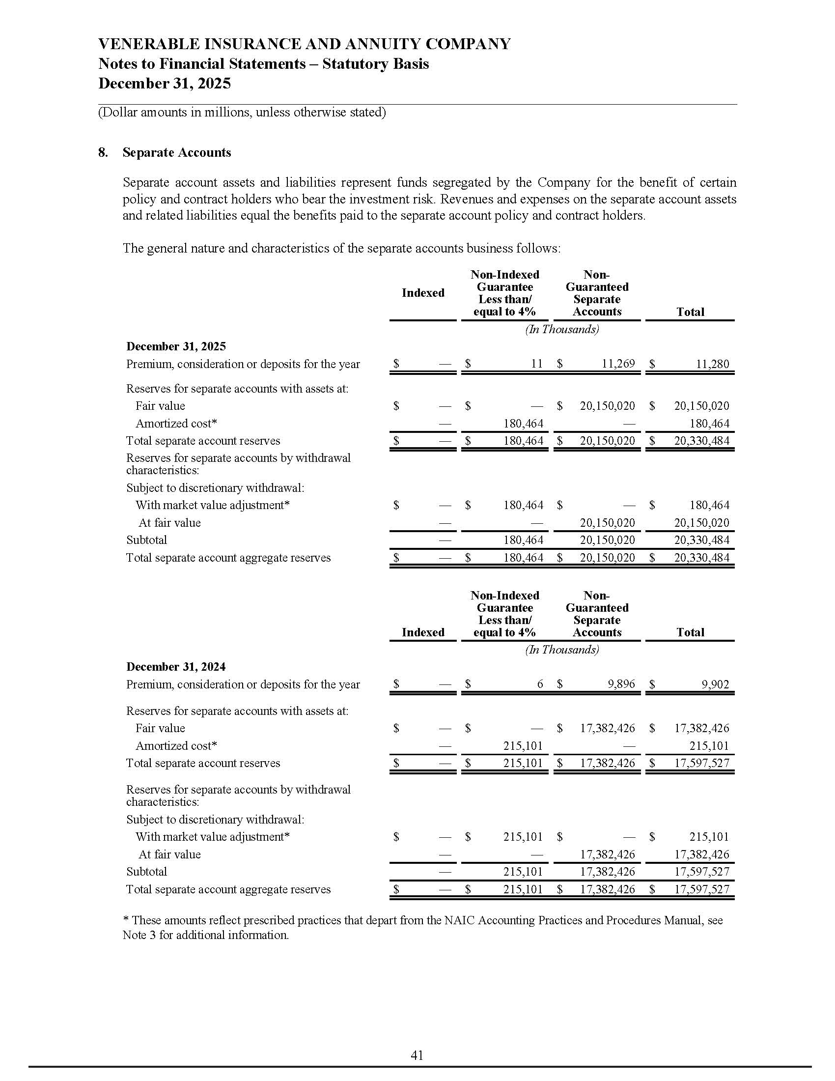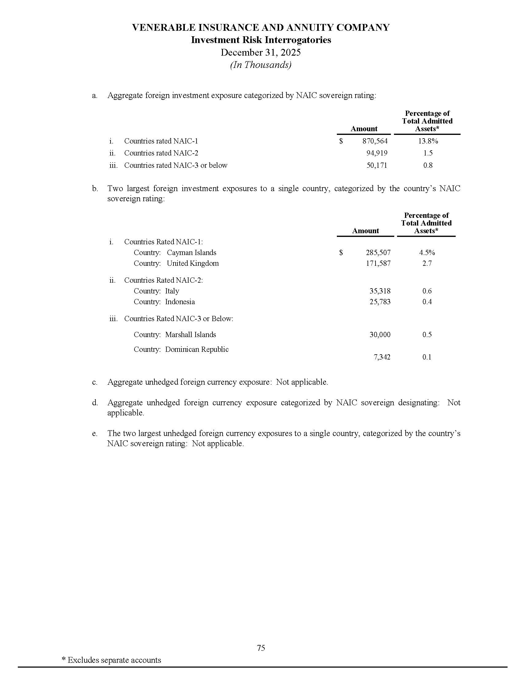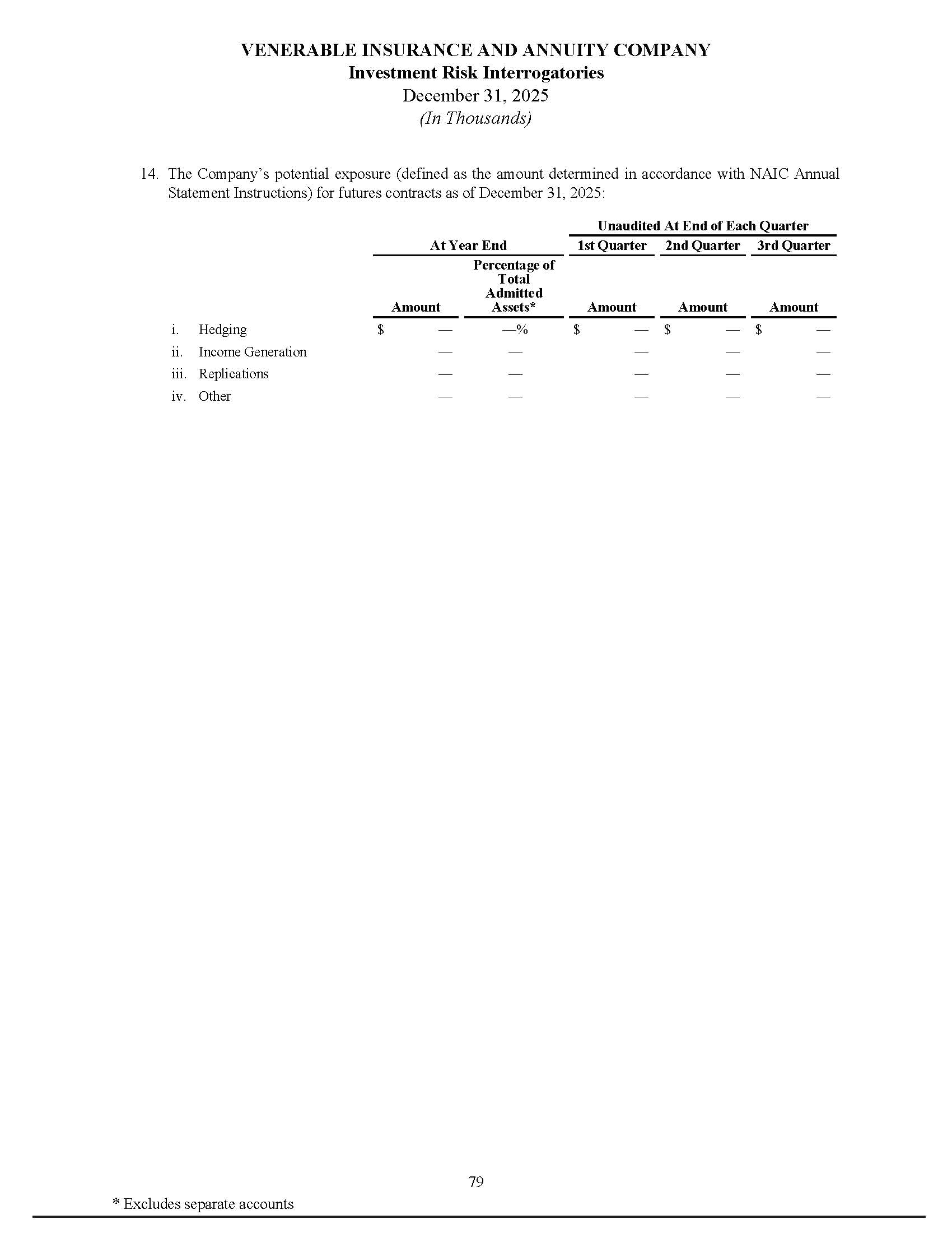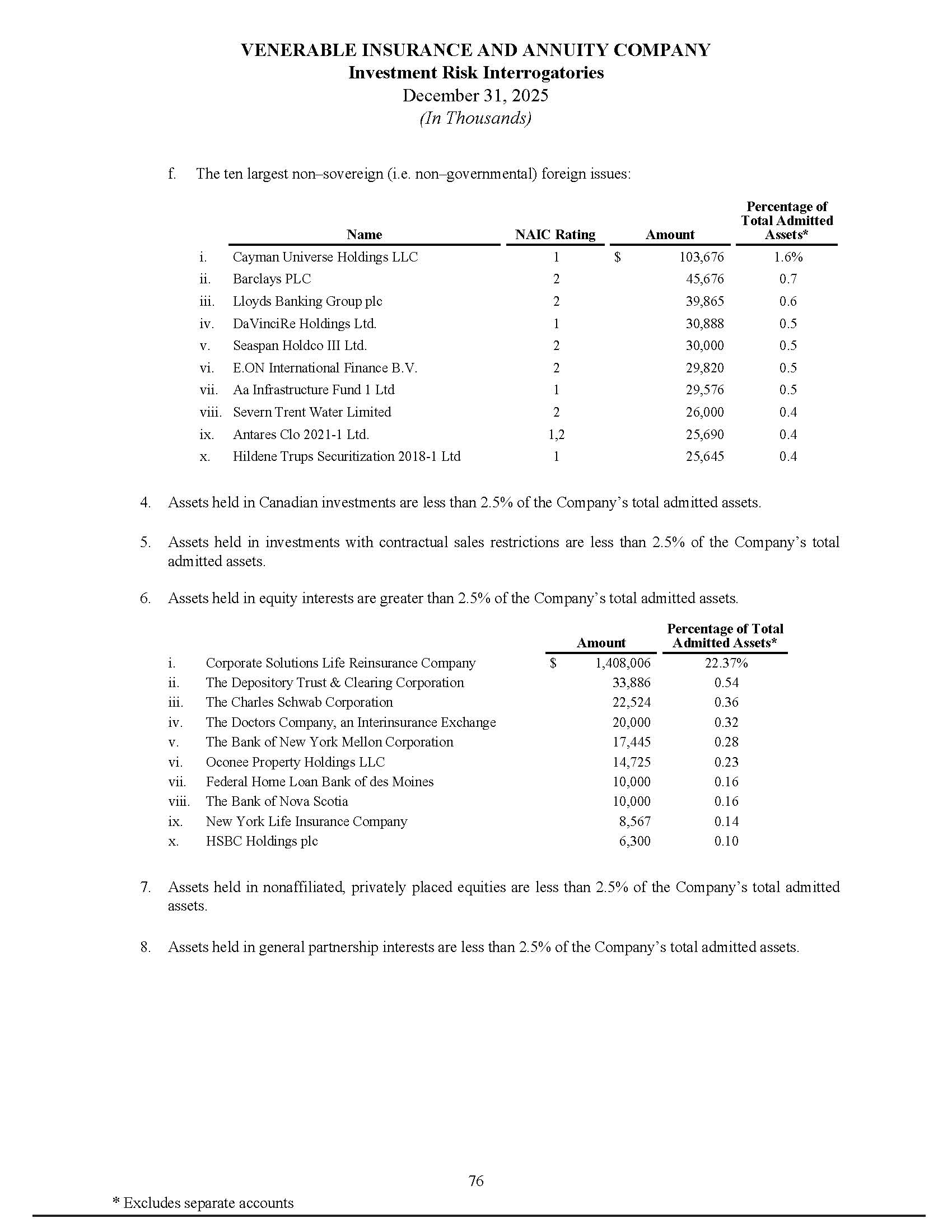| (c) | As the account had no investments in the investment Division until 2025, this data is not meaningful and is therefore not presented. See Note 1 for additional information on the Novation. |