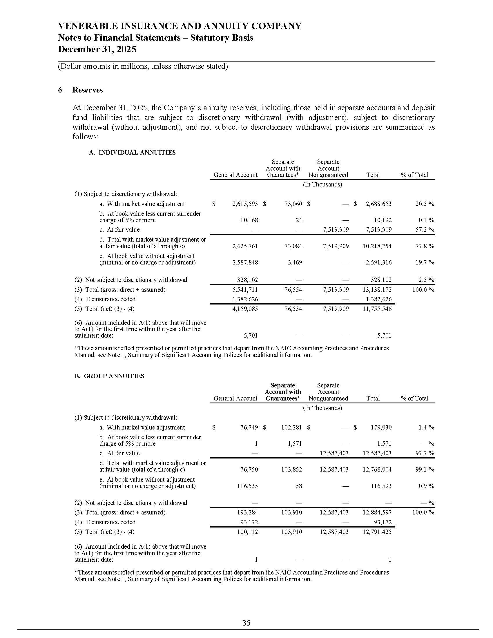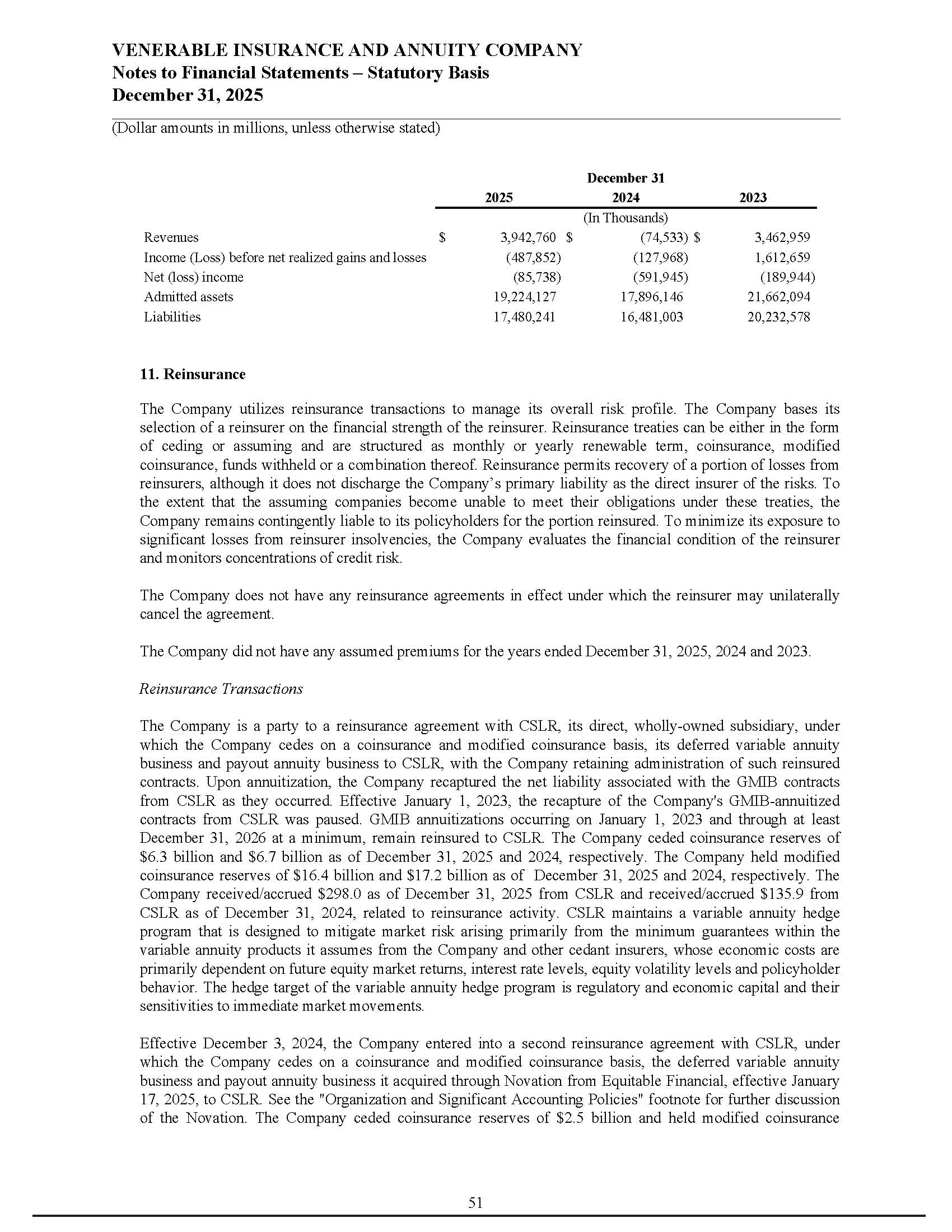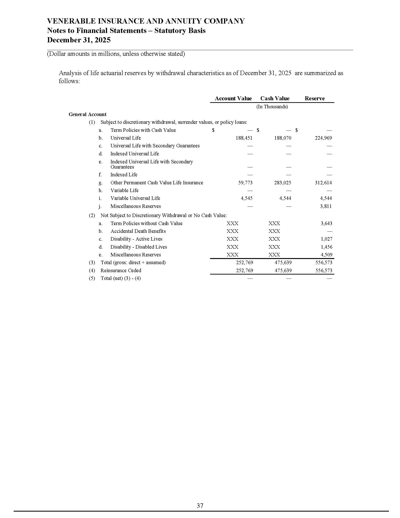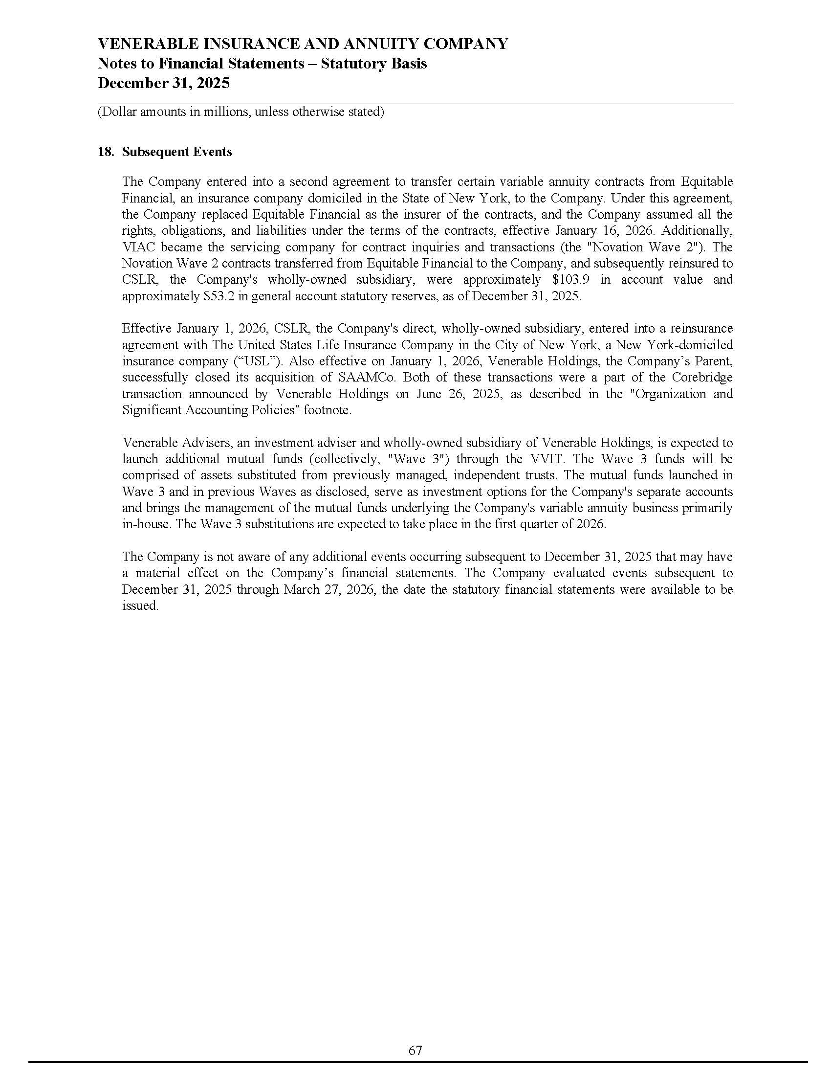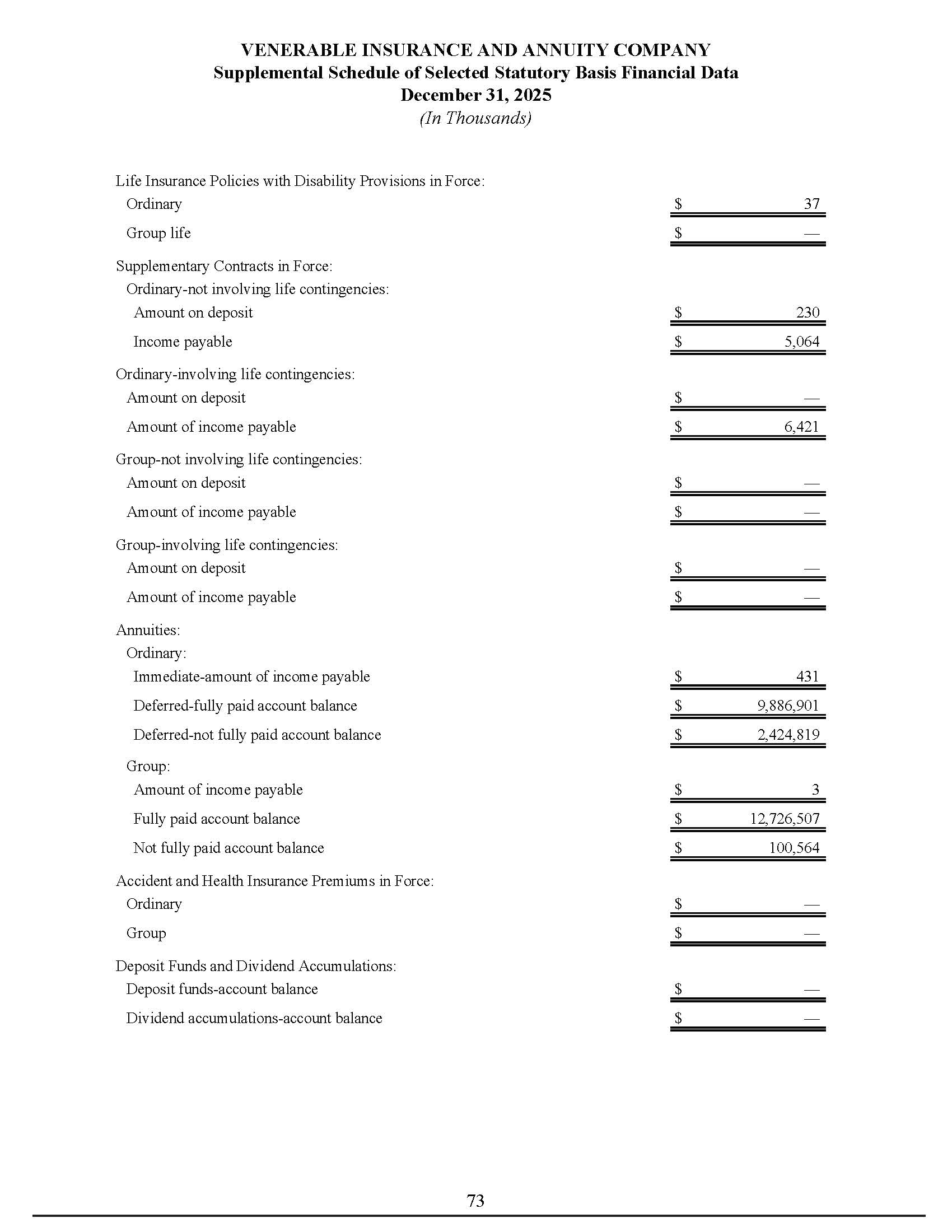 | (c) | As the account had no investments in the investment Division until 2025, this data is not meaningful and is therefore not presented. See Note 1 for additional information on the Novation. |