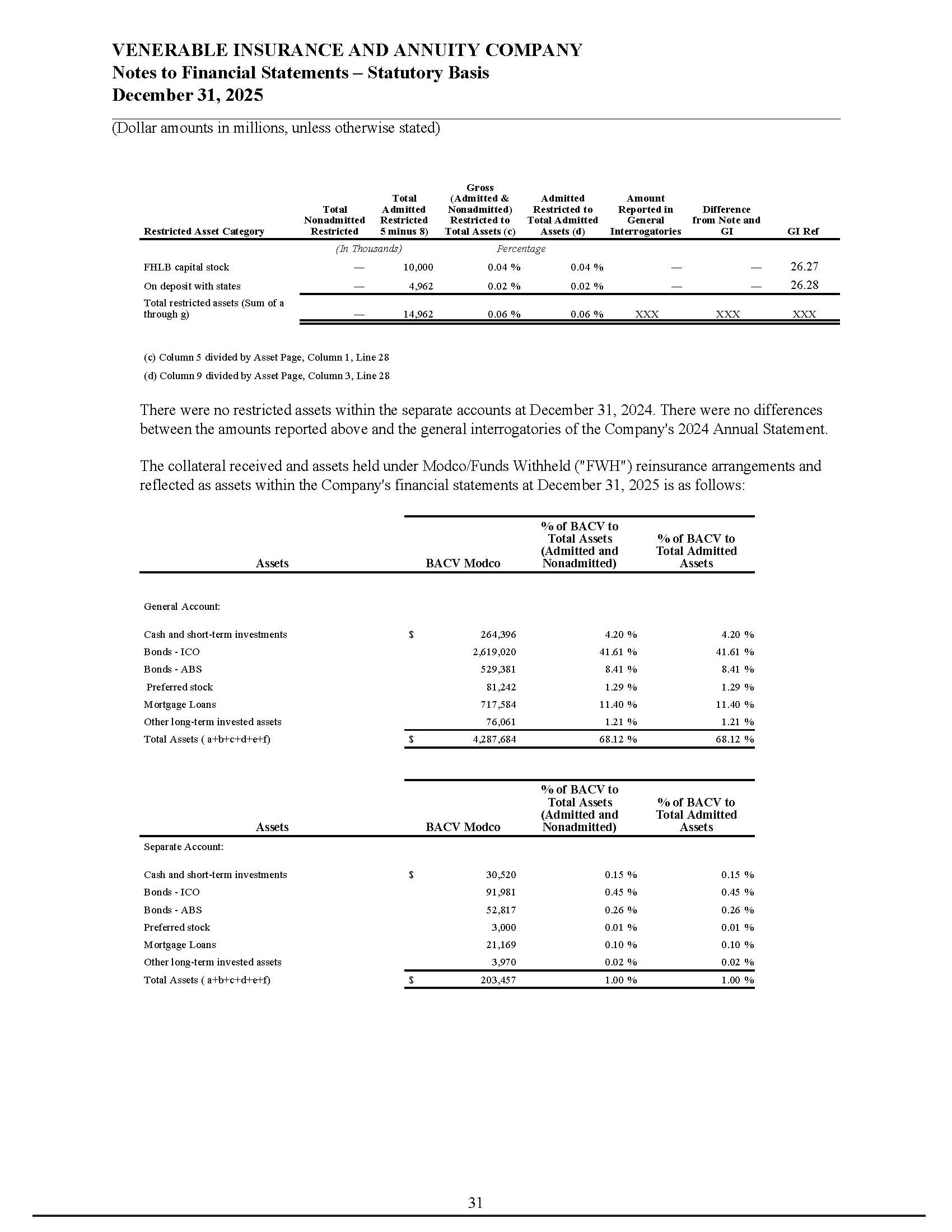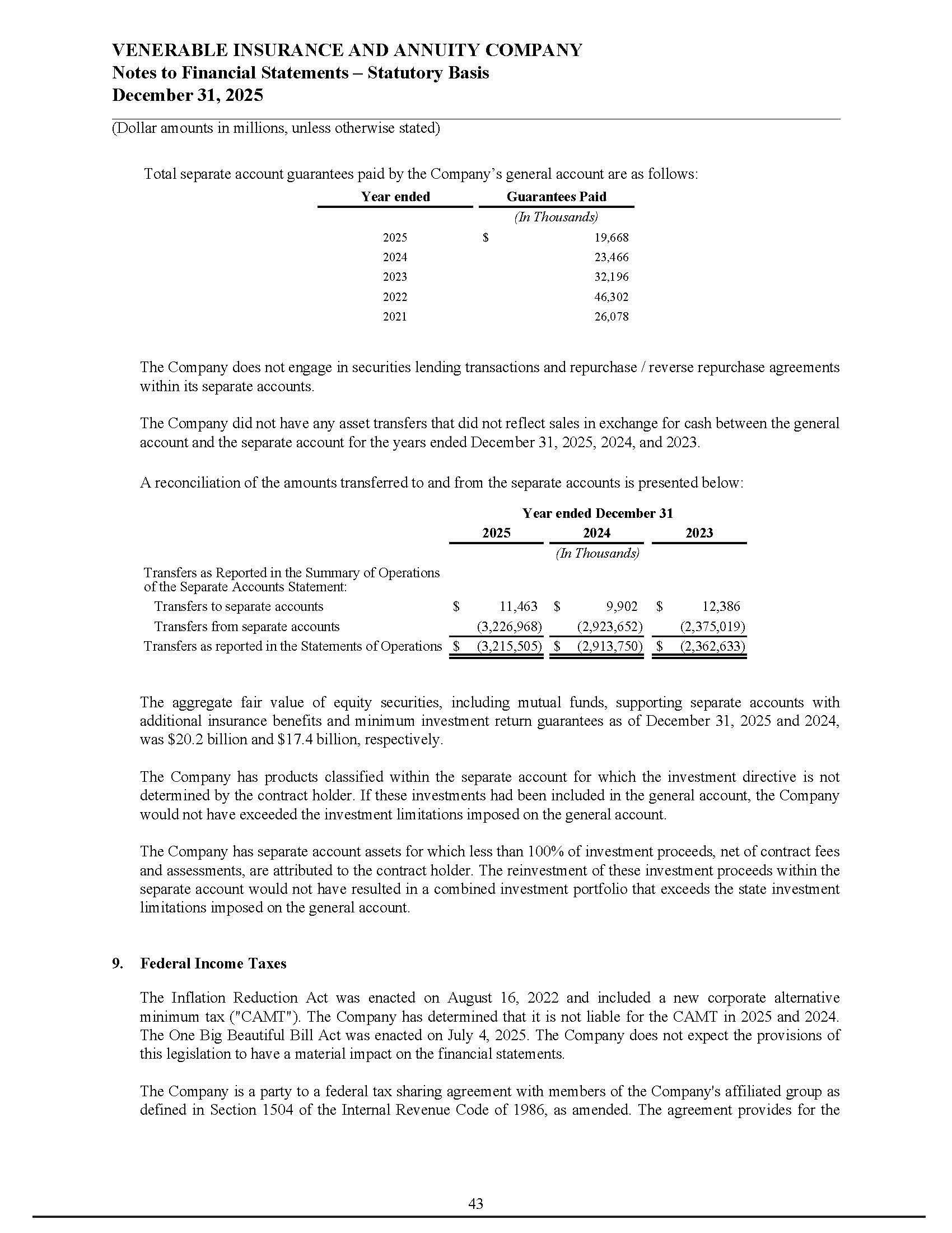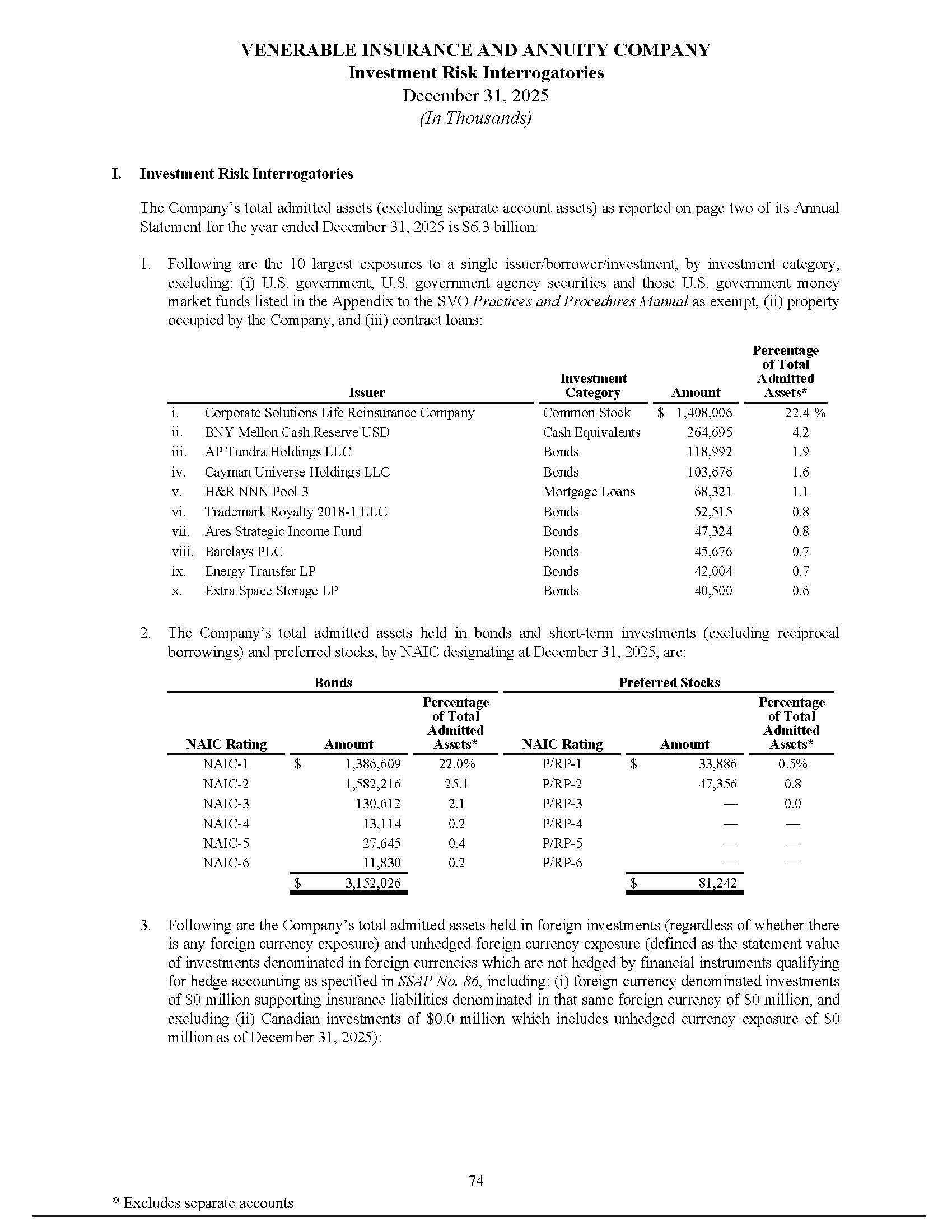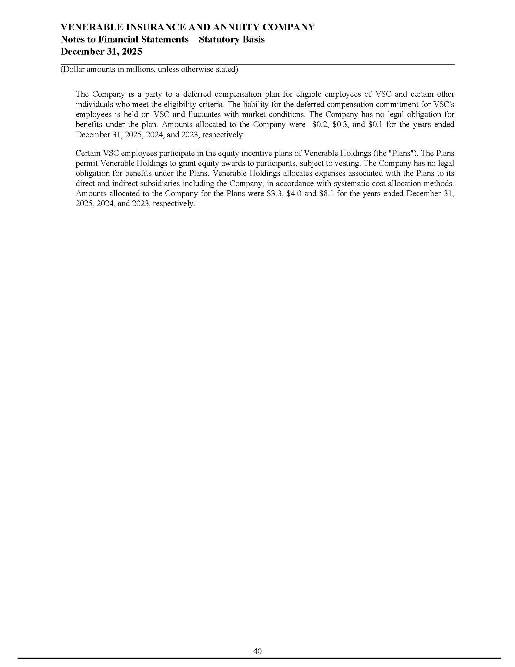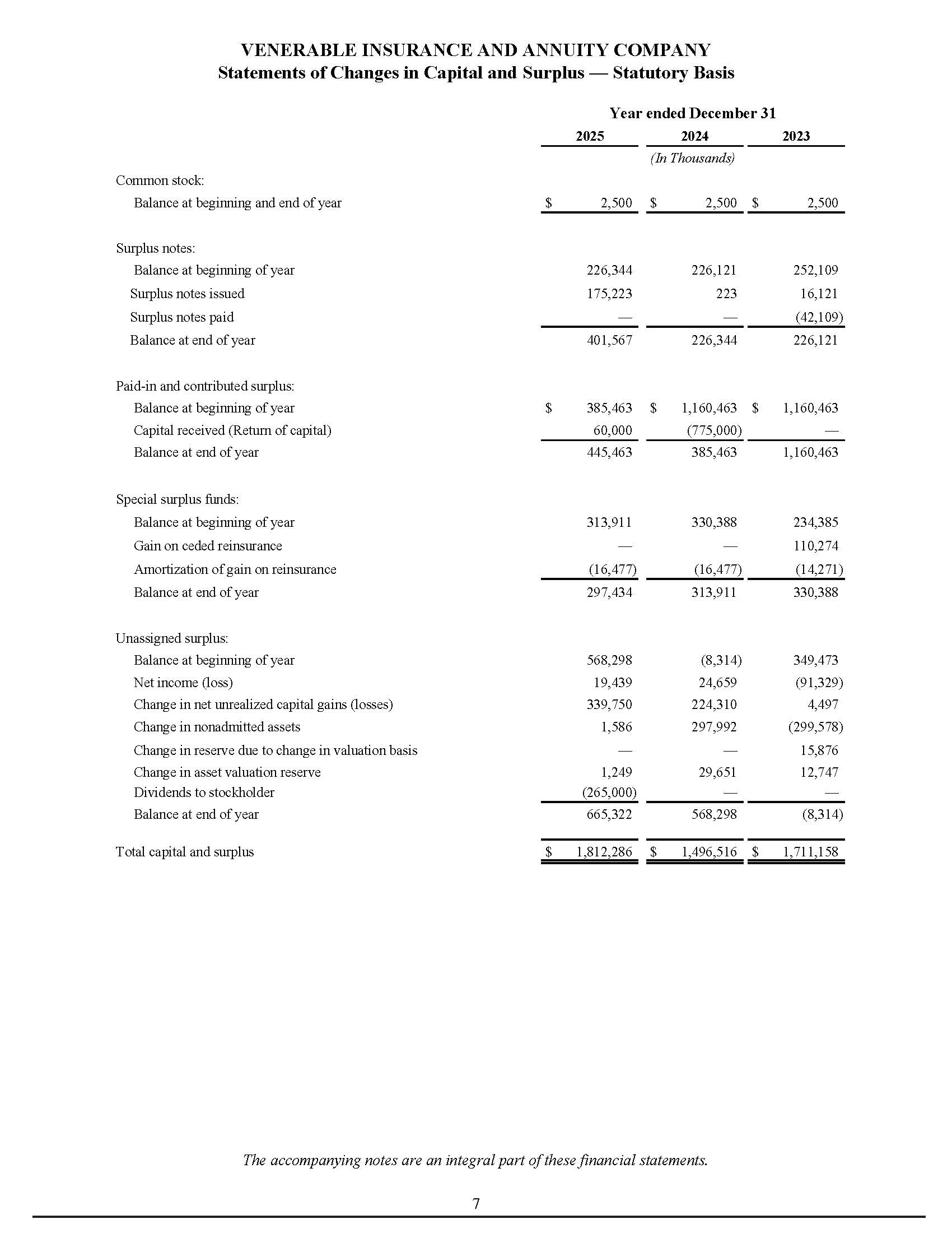 | (c) | As the account had no investments in the investment Division until 2025, this data is not meaningful and is therefore not presented. See Note 1 for additional information on the Novation. |