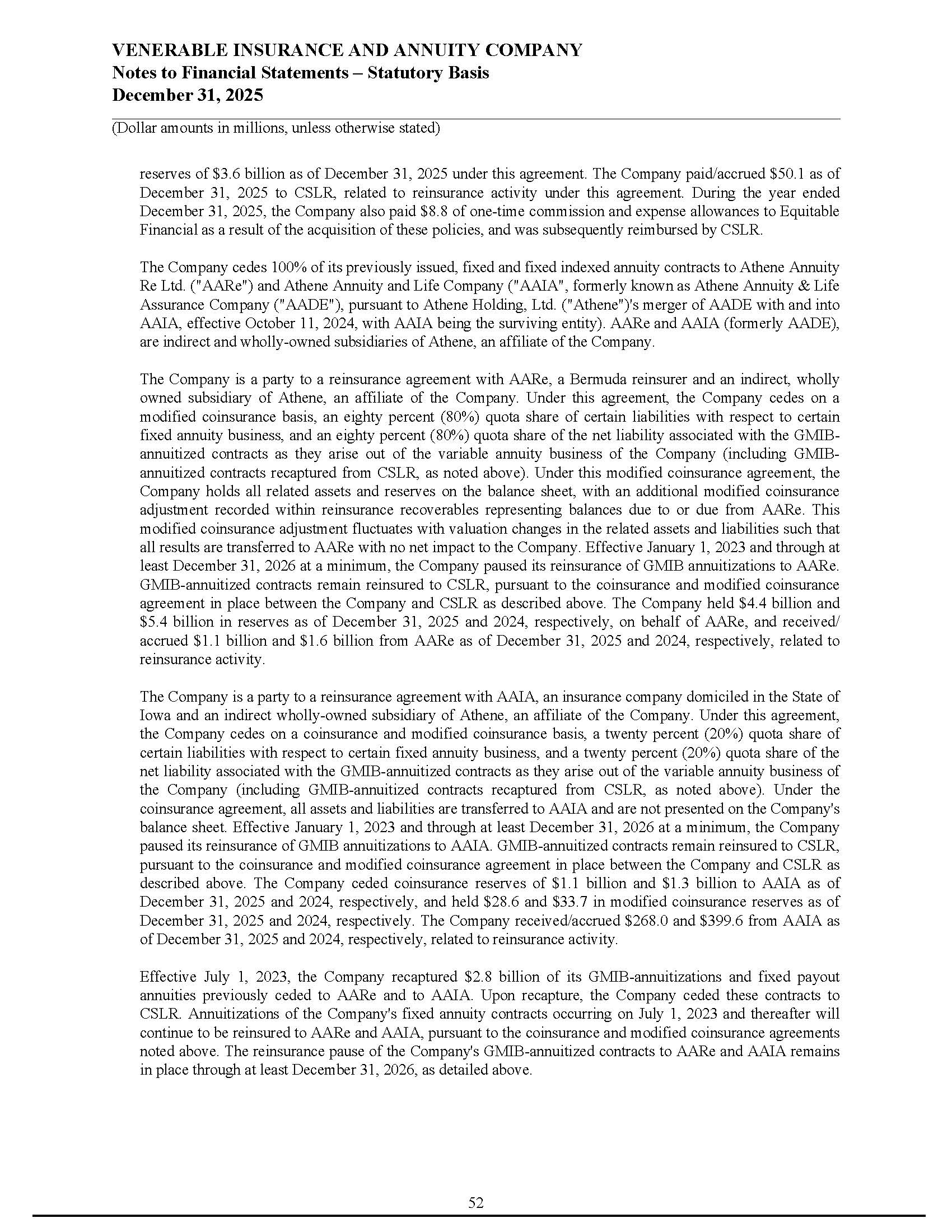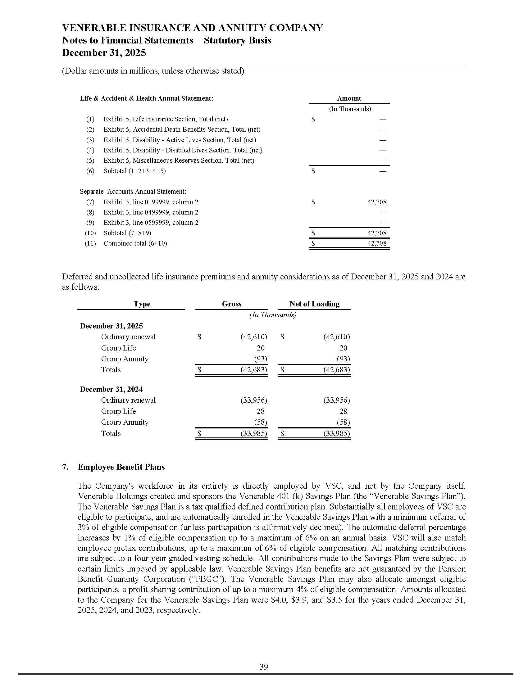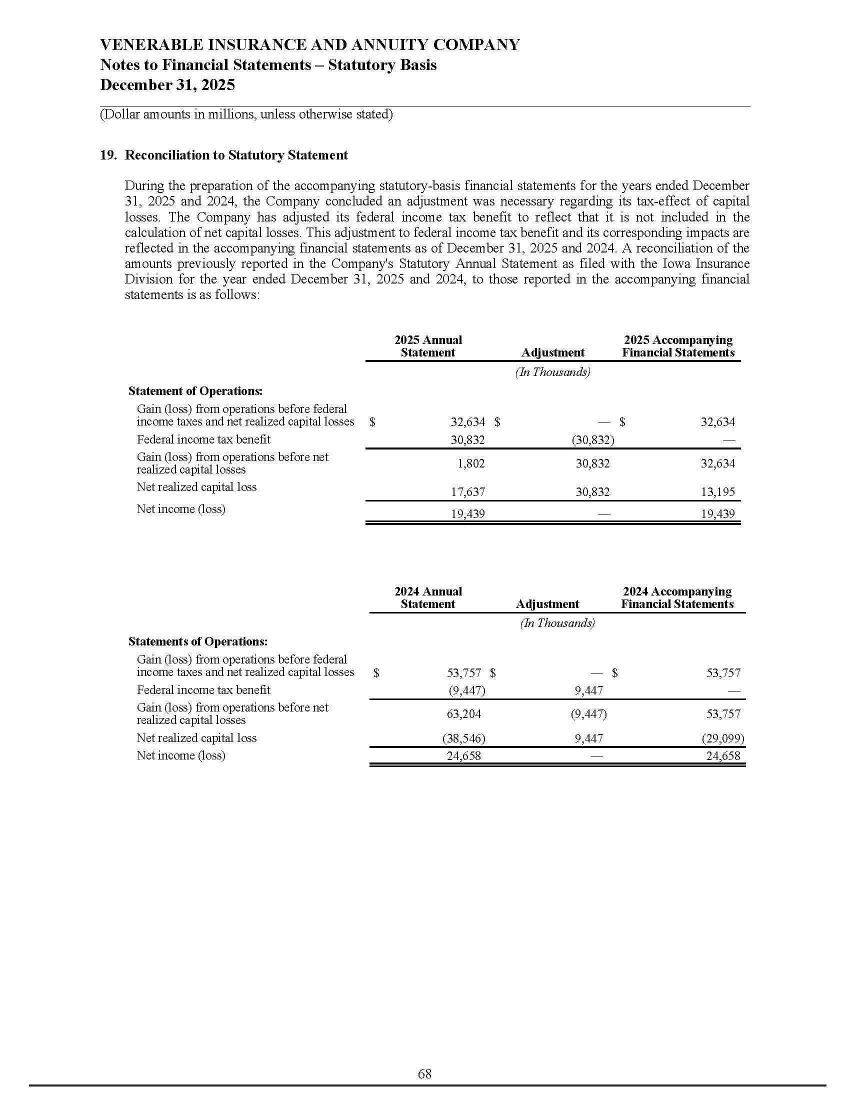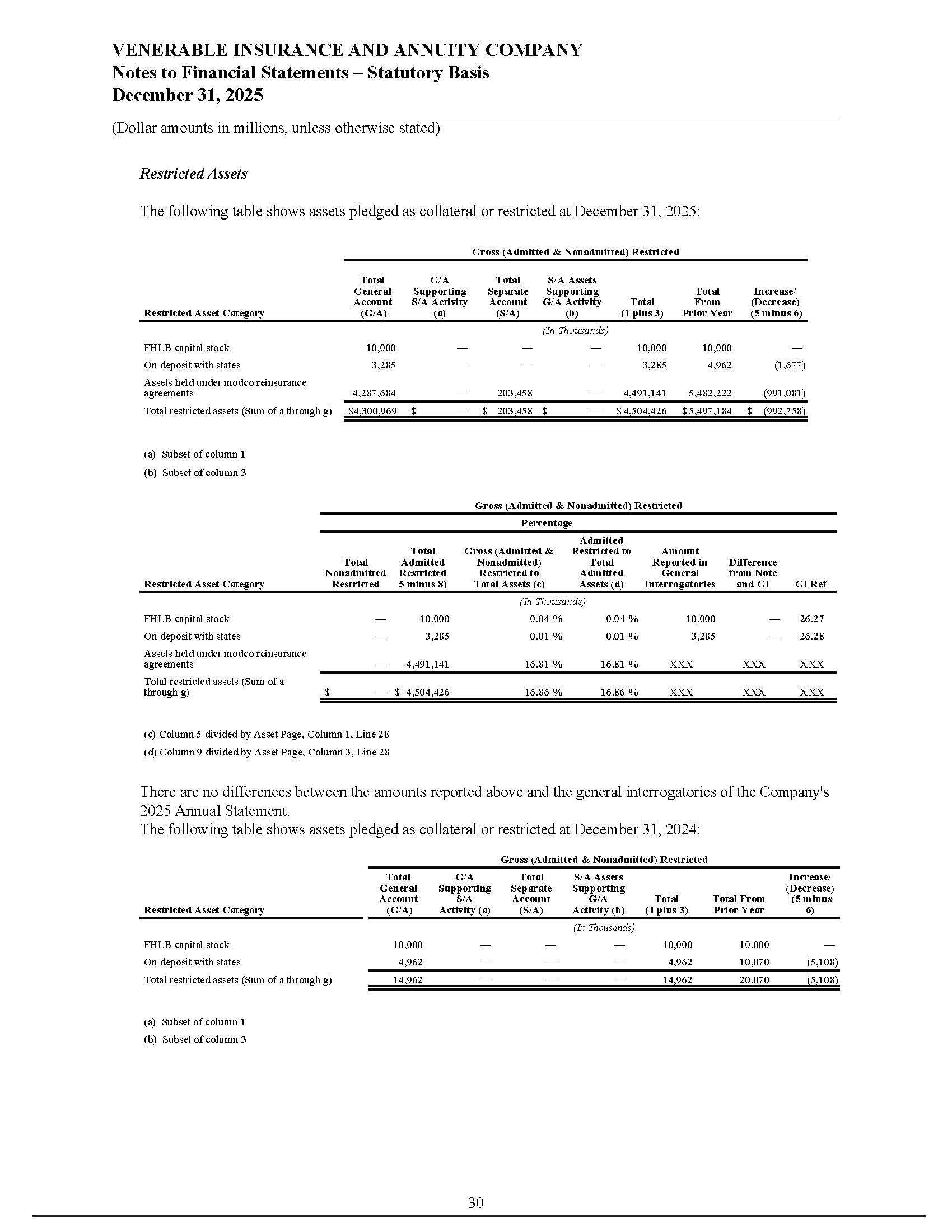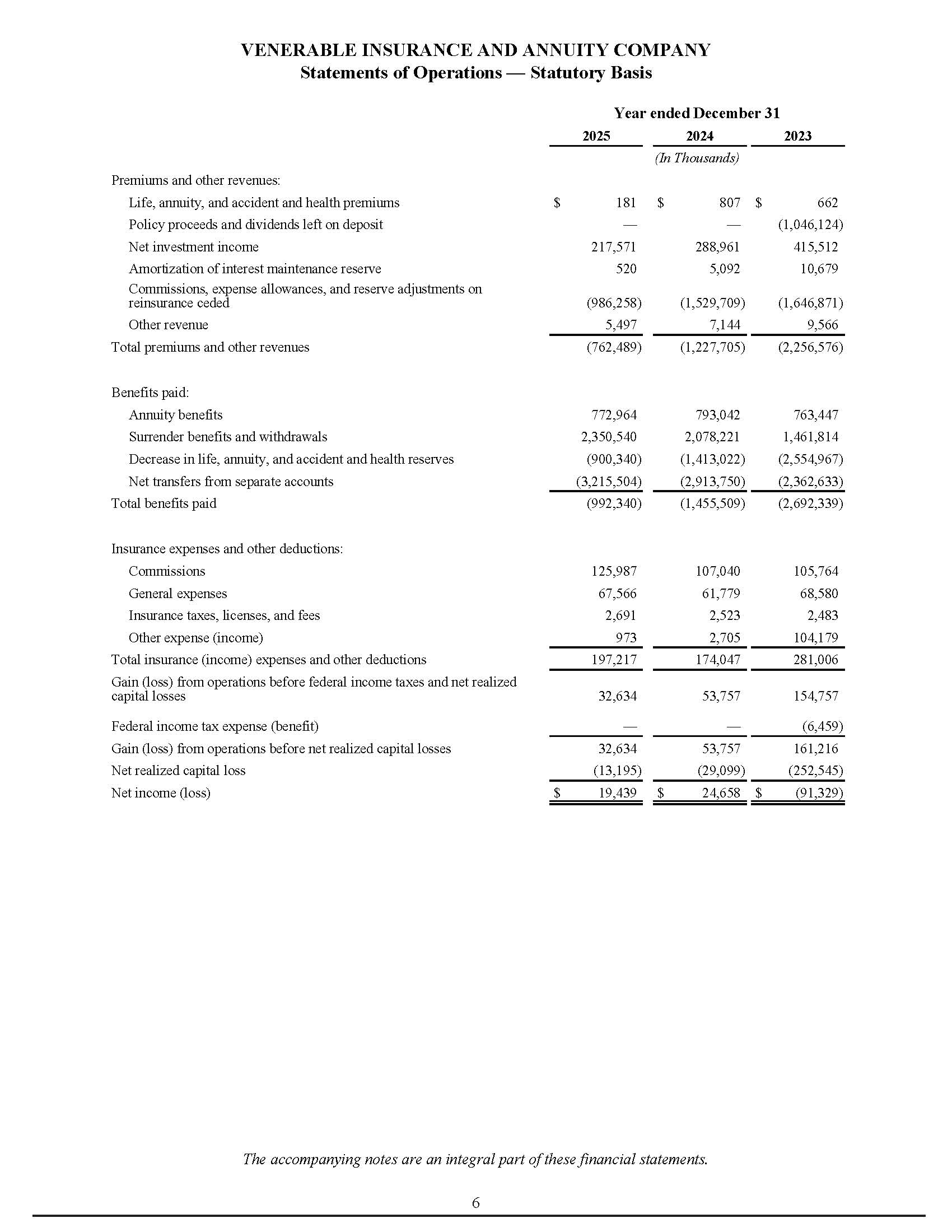 | (c) | As the account had no investments in the investment Division until 2025, this data is not meaningful and is therefore not presented. See Note 1 for additional information on the Novation. |