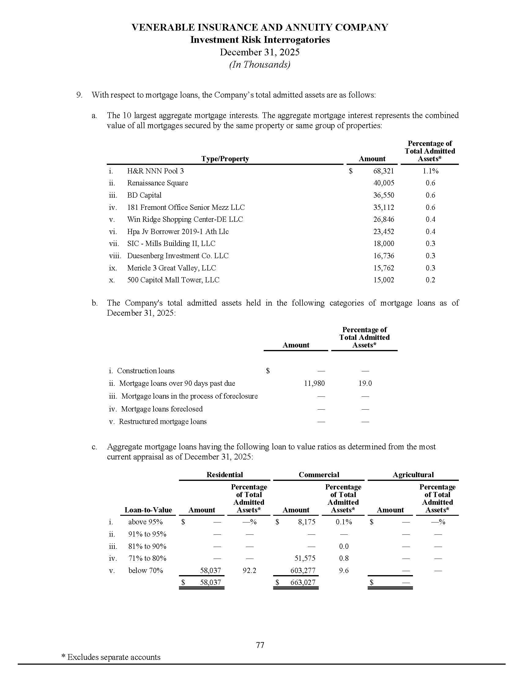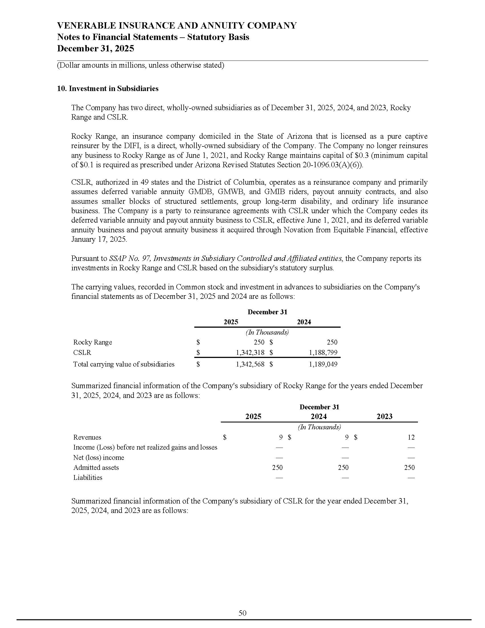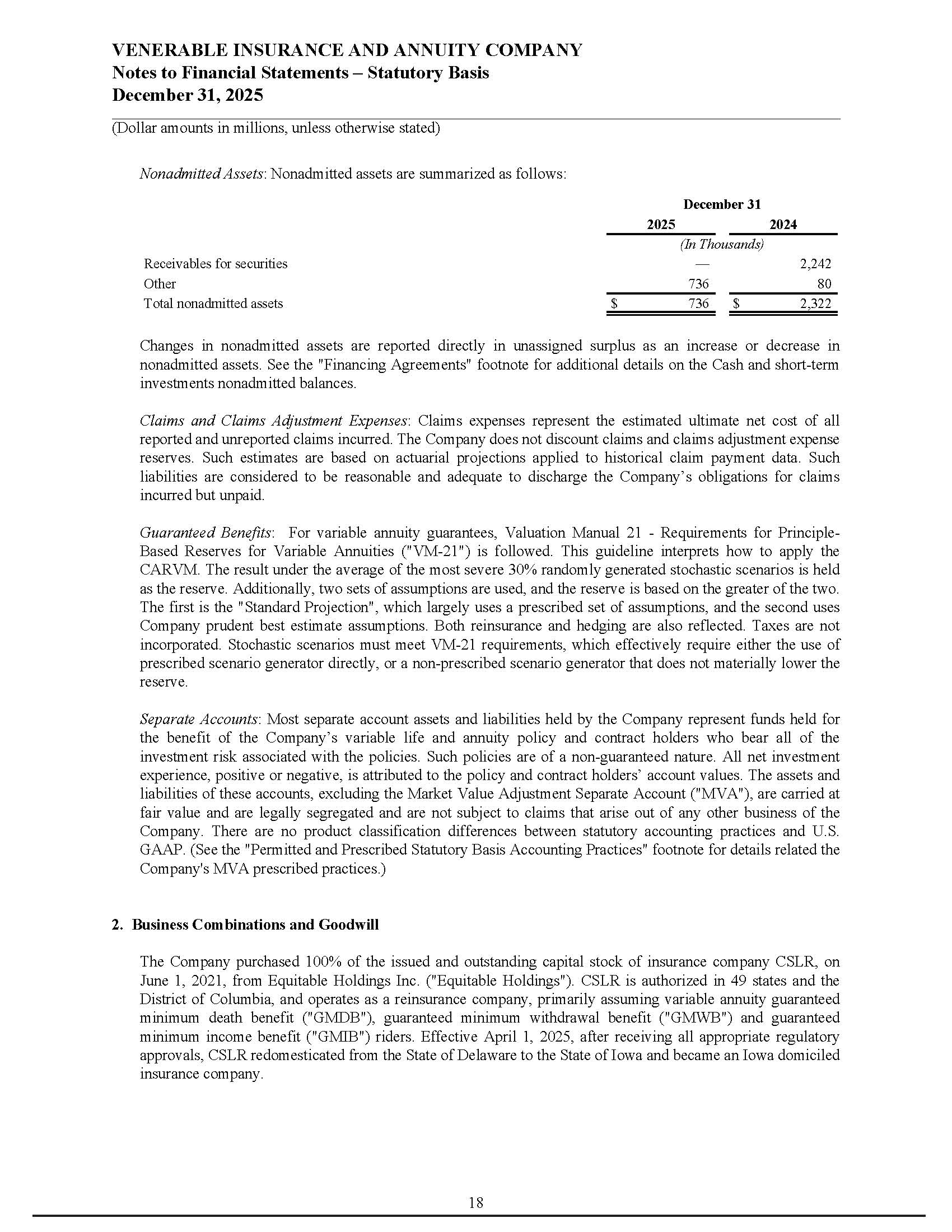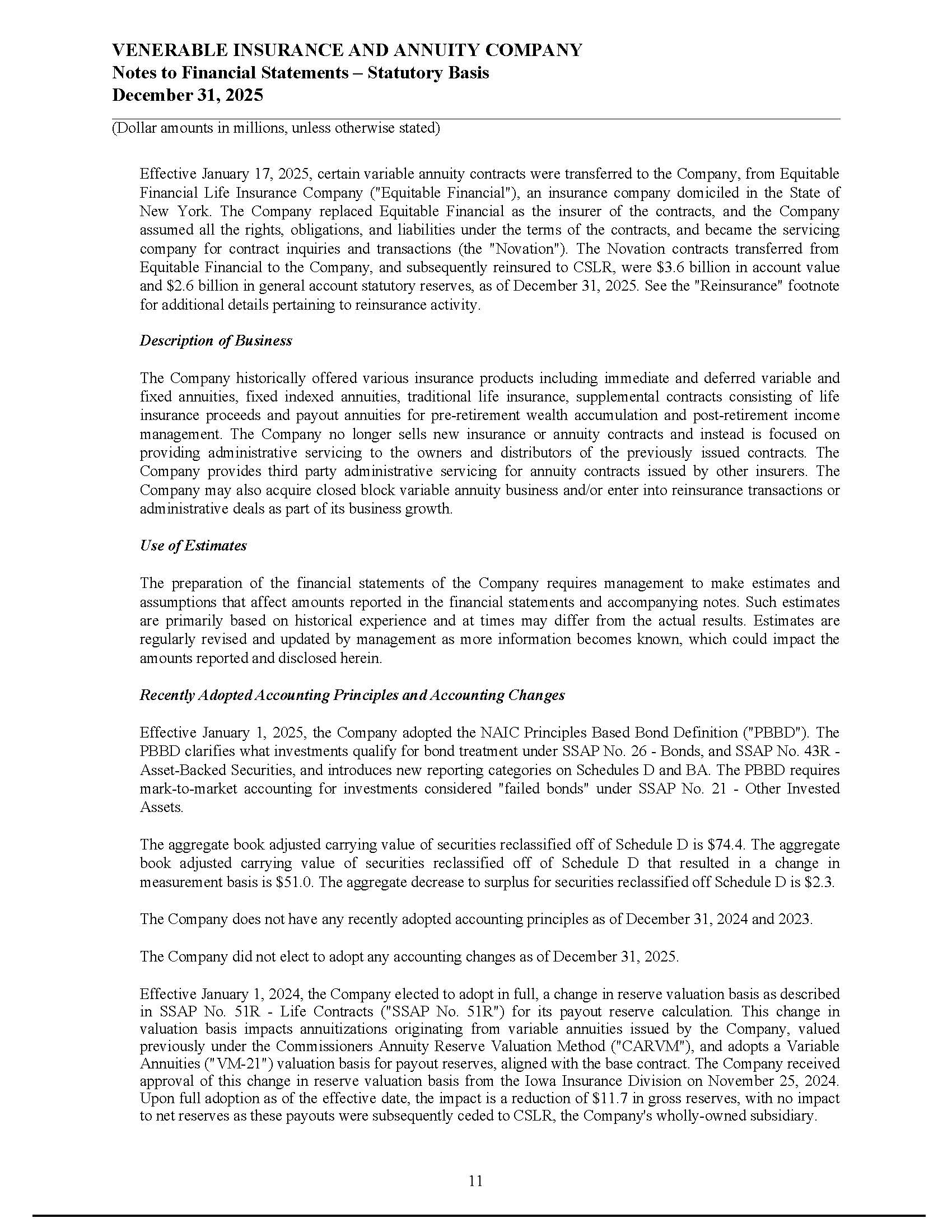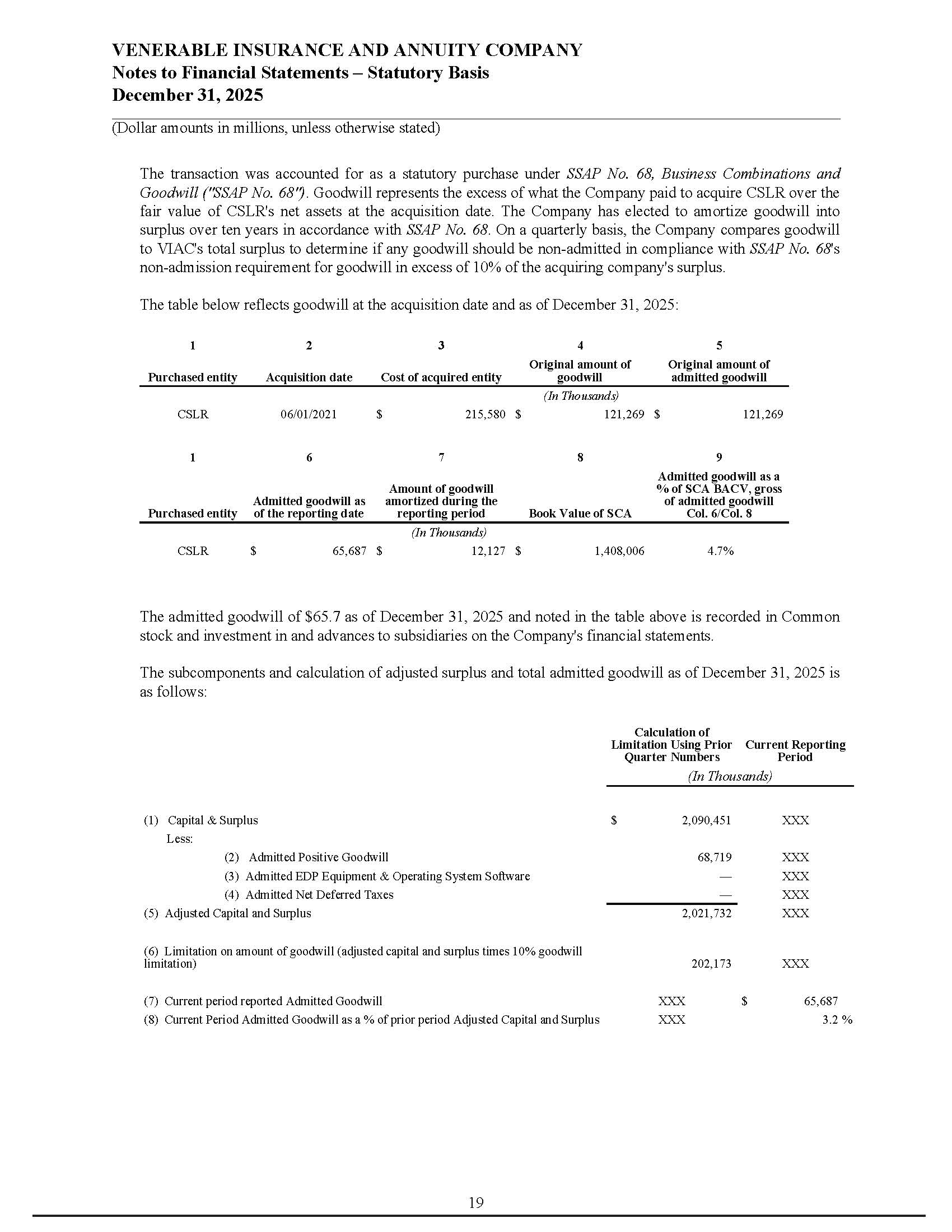 | (c) | As the account had no investments in the investment Division until 2025, this data is not meaningful and is therefore not presented. See Note 1 for additional information on the Novation. |