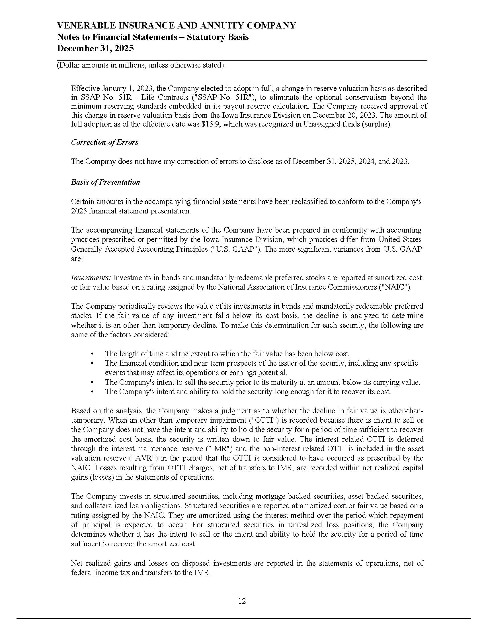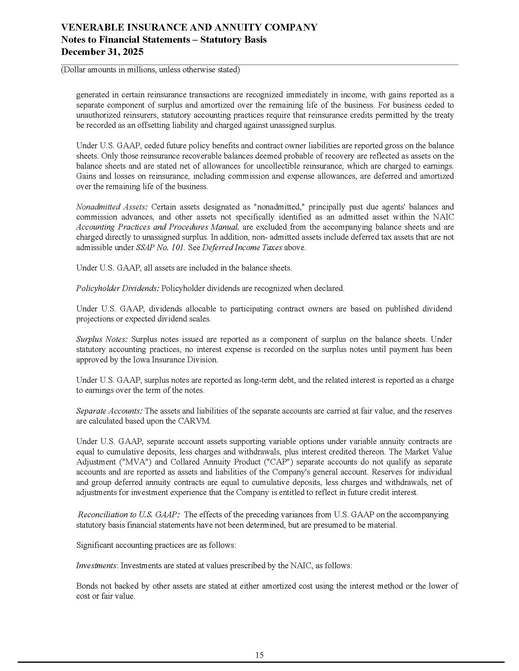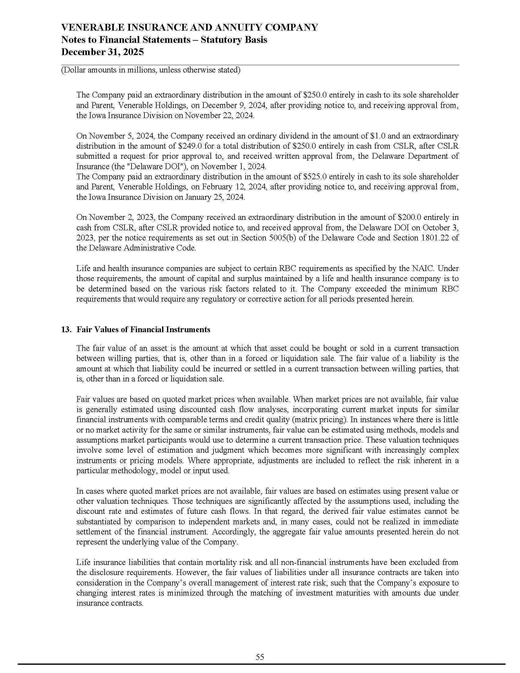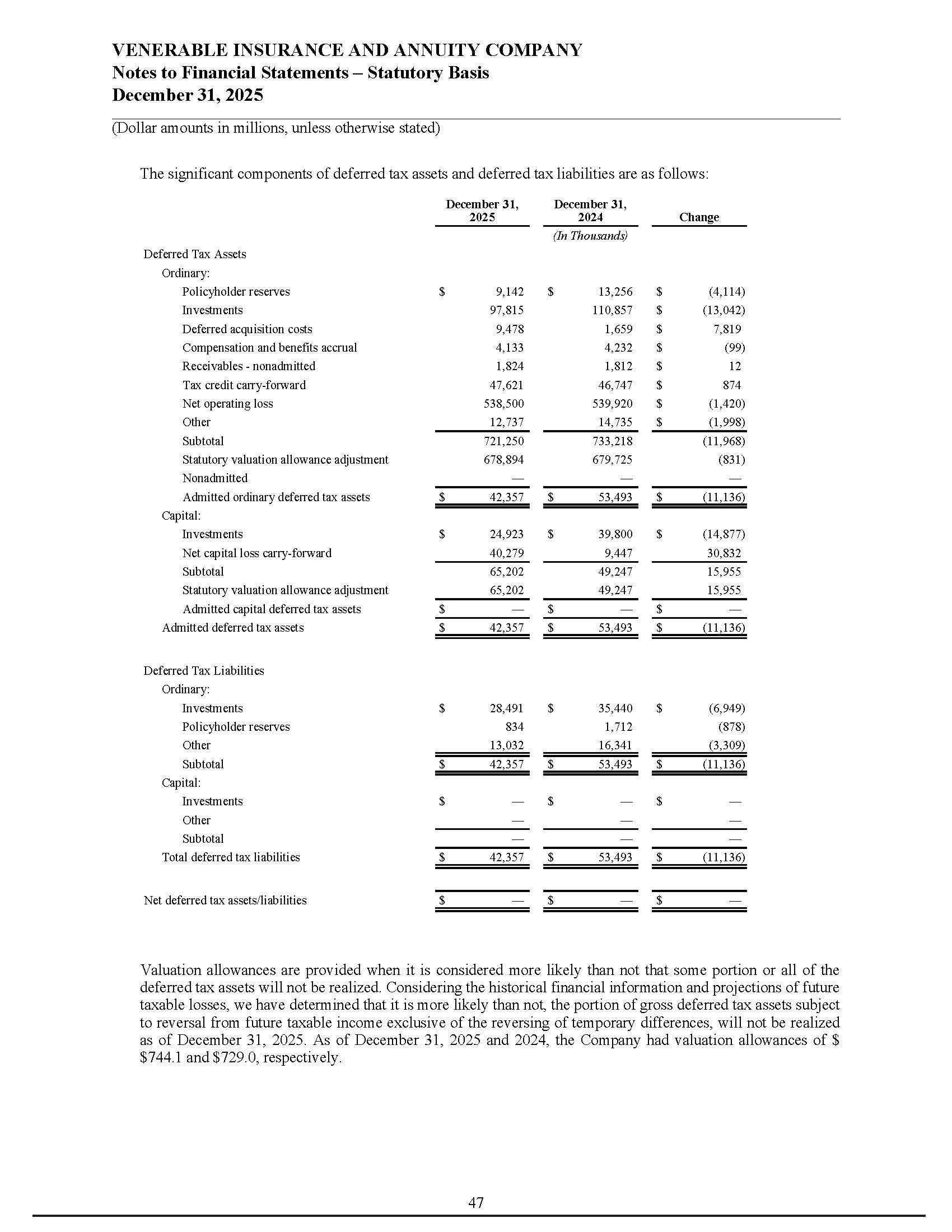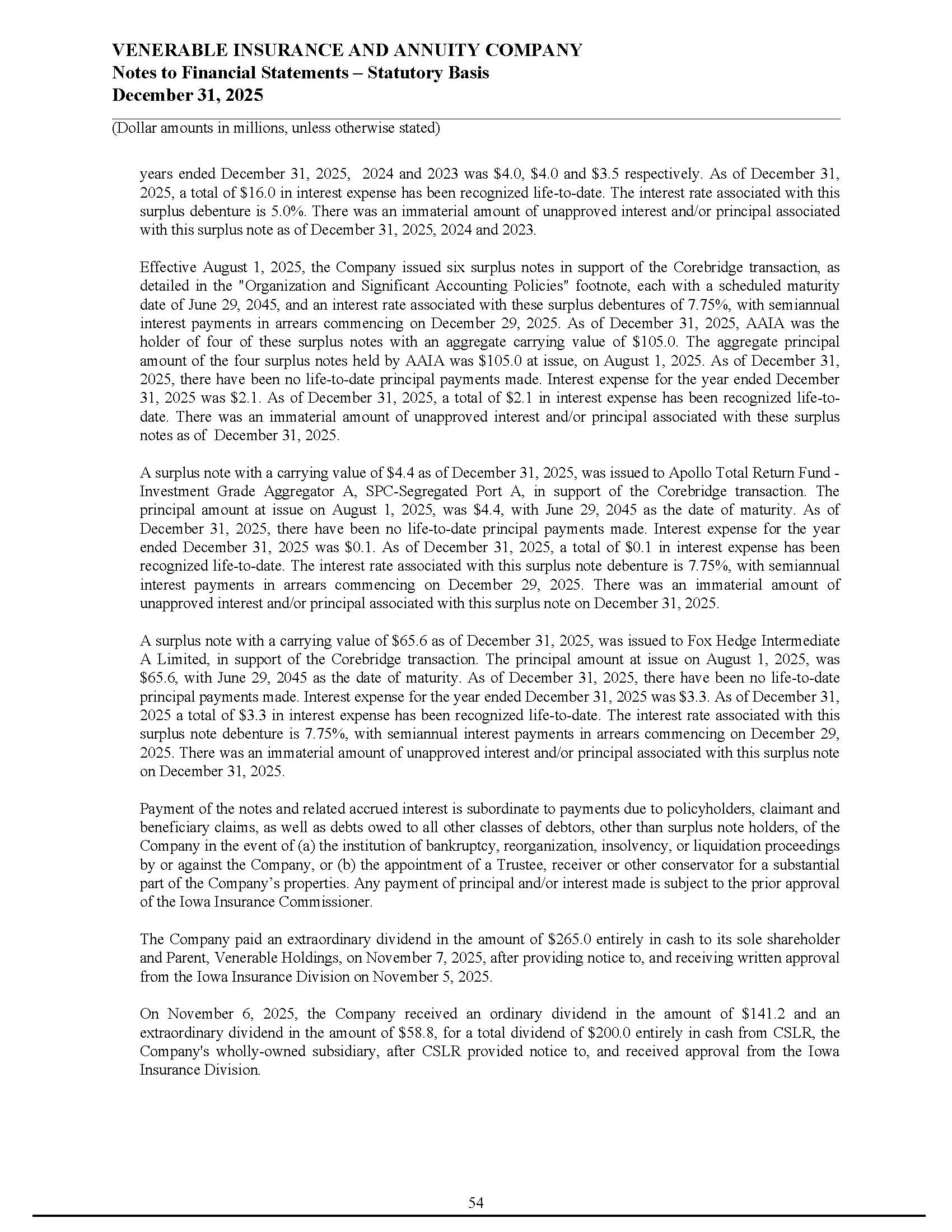 | (c) | As the account had no investments in the investment Division until 2025, this data is not meaningful and is therefore not presented. See Note 1 for additional information on the Novation. |