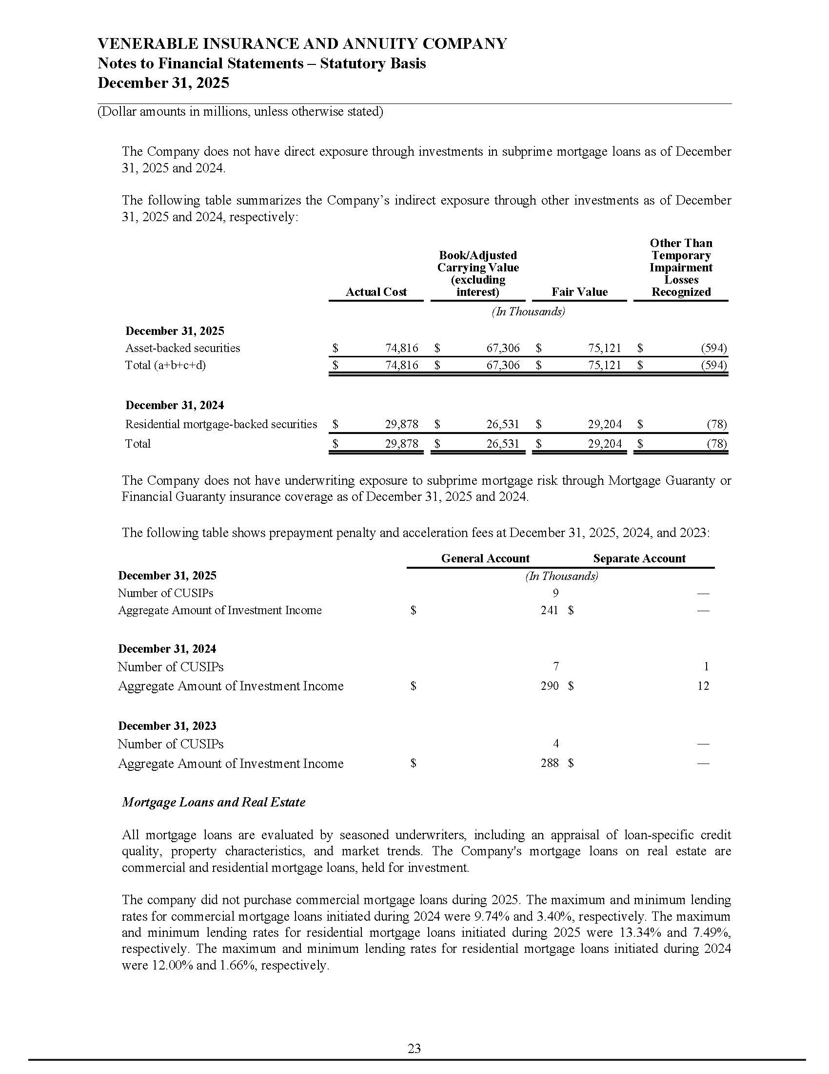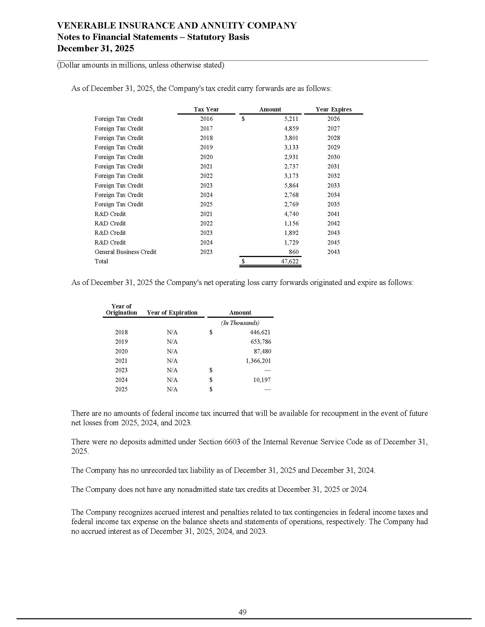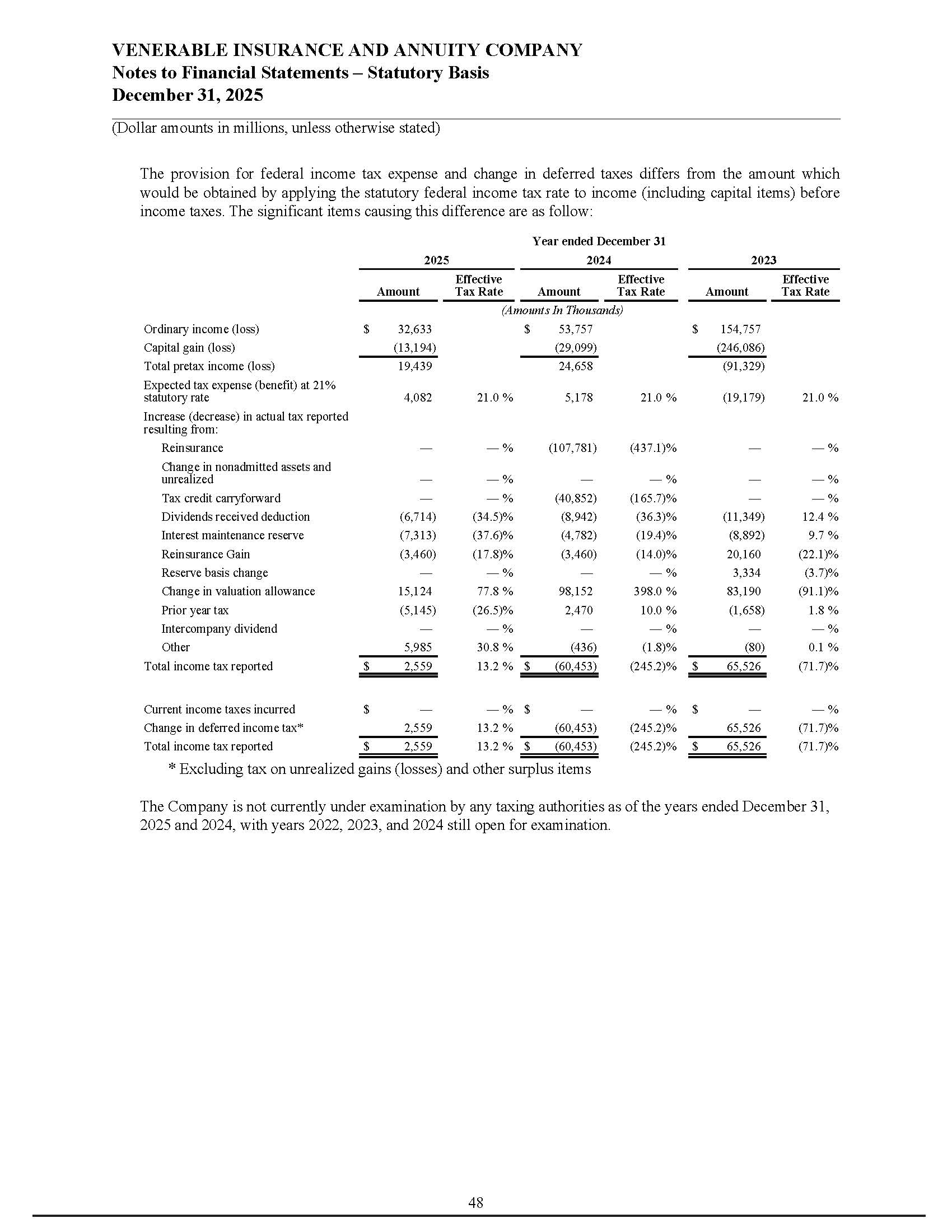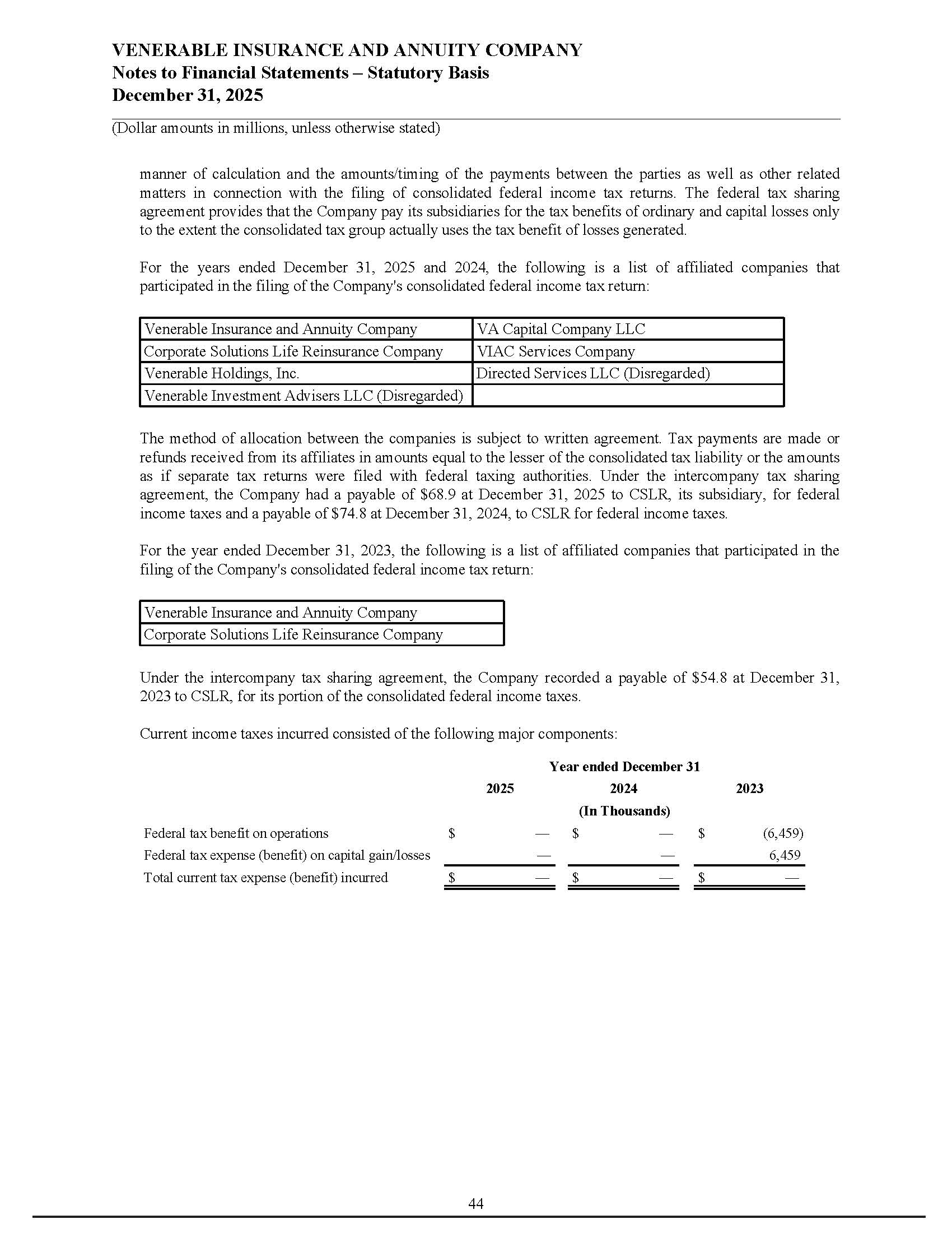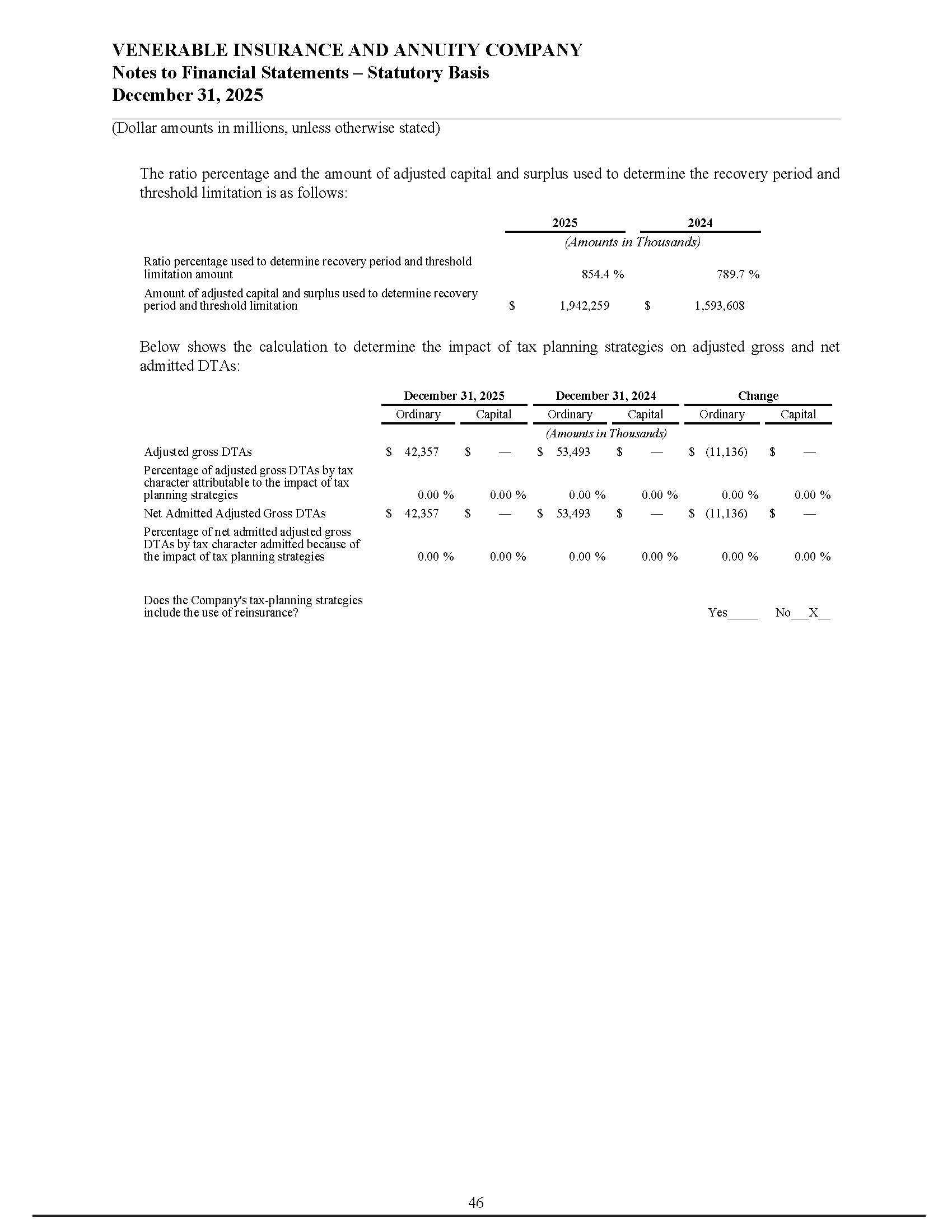 | (c) | As the account had no investments in the investment Division until 2025, this data is not meaningful and is therefore not presented. See Note 1 for additional information on the Novation. |
