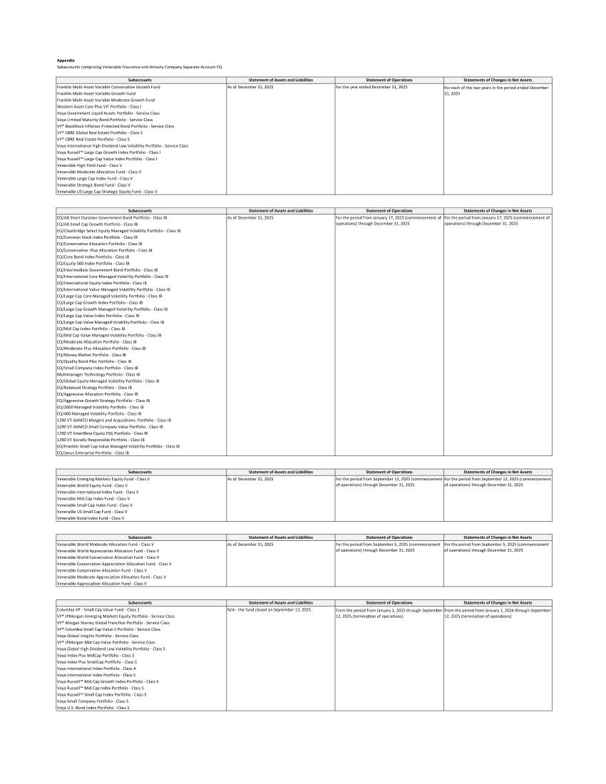 | Venerable Strategic Bond Fund - Class V | Venerable US Large Cap Strategic Equity Fund - Class V | EQ/AB Short Duration Government Bond Portfolio - Class IB | EQ/AB Small Cap Growth Portfolio - Class IB | EQ/Clearbridge Select Equity Managed Volatility Portfolio - Class IB | |||||||||