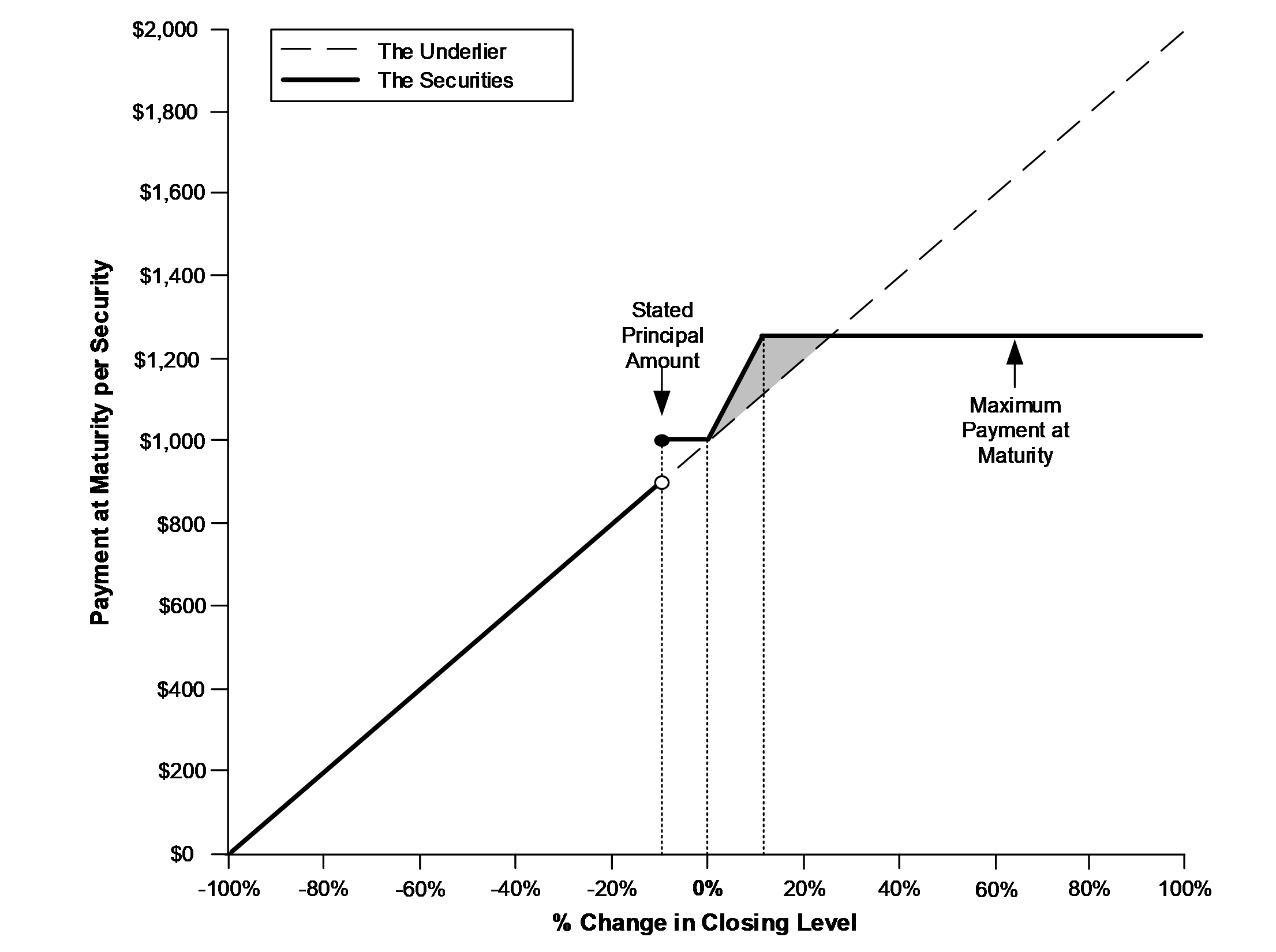 oIf the underlier appreciates 5%, investors will receive $1,100 per security, or 110% of the stated principal amount.