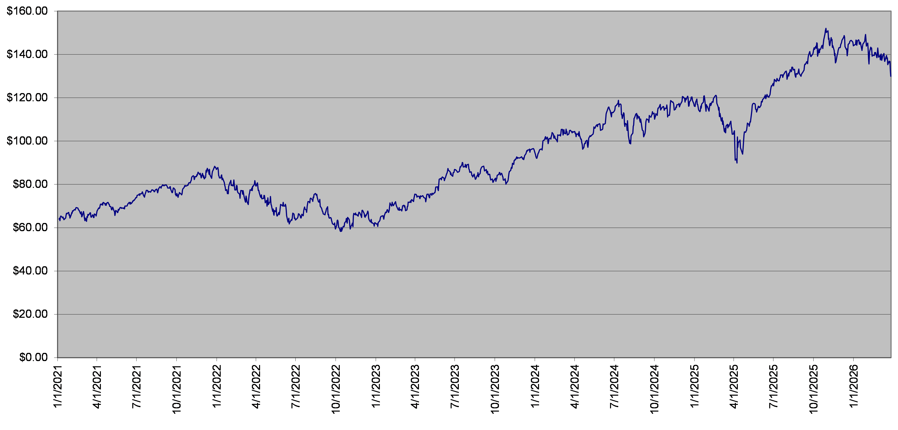 The closing level of the underlier on March 27, 2026 was $129.92. The following graph sets forth the daily closing levels of the underlier for the period noted below. We obtained the historical information presented in this document from Bloomberg Financial Markets, without independent verification. The underlier has at times experienced periods of high volatility. You should not take the historical closing levels of the underlier as an indication of its future performance, and no assurance can be given as to the closing level of the underlier at any time.