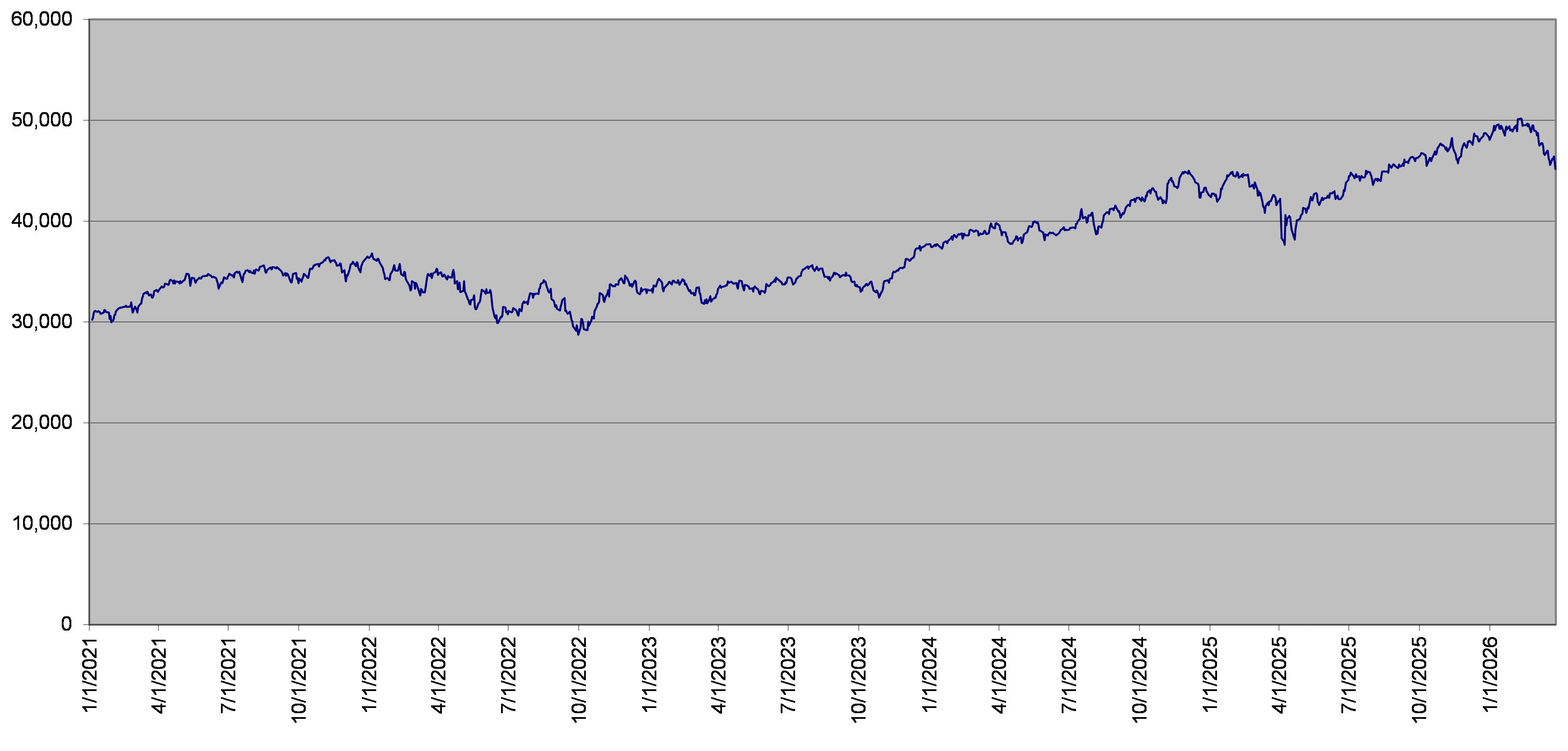 INDU Index Daily Closing Levels January 1, 2021 to March 27, 2026 |