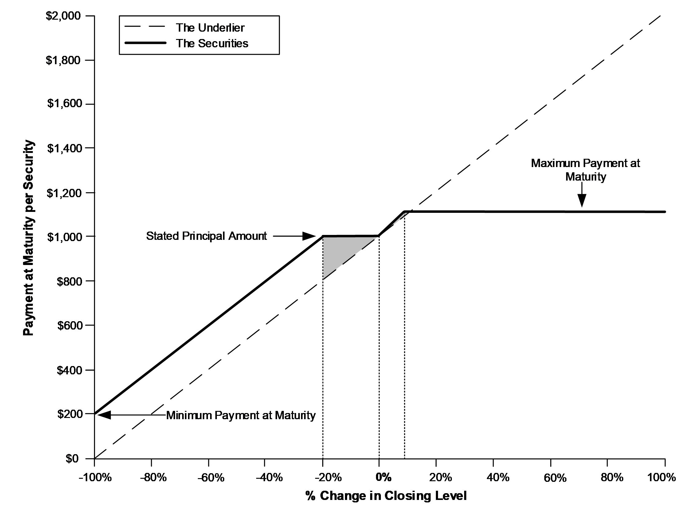 oIf the underlier appreciates 100%, investors will receive only the maximum payment at maturity of $1,102.50 per security, or 110.25% of the stated principal amount.