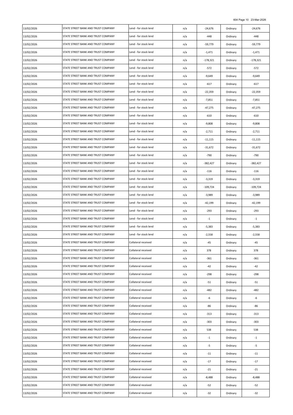 604 Page 10 23-Mar-2026 13/02/2026 n/a -24,676 Ordinary -24,676 13/02/2026 n/a -448 Ordinary -448 13/02/2026 n/a -59,779 Ordinary -59,779 13/02/2026 n/a -1,471 Ordinary -1,471 13/02/2026 n/a -178,321 Ordinary -178,321 13/02/2026 n/a -572 Ordinary -572 13/02/2026 n/a -9,649 Ordinary -9,649 13/02/2026 n/a -617 Ordinary -617 13/02/2026 n/a -22,359 Ordinary -22,359 13/02/2026 n/a -7,851 Ordinary -7,851 13/02/2026 n/a -47,275 Ordinary -47,275 13/02/2026 n/a -610 Ordinary -610 13/02/2026 n/a -9,808 Ordinary -9,808 13/02/2026 n/a -2,711 Ordinary -2,711 13/02/2026 n/a -11,115 Ordinary -11,115 13/02/2026 n/a -31,672 Ordinary -31,672 13/02/2026 n/a -790 Ordinary -790 13/02/2026 n/a -382,427 Ordinary -382,427 13/02/2026 n/a -116 Ordinary -116 13/02/2026 n/a -3,319 Ordinary -3,319 13/02/2026 n/a -109,724 Ordinary -109,724 13/02/2026 n/a -3,989 Ordinary -3,989 13/02/2026 n/a -42,199 Ordinary -42,199 13/02/2026 n/a -293 Ordinary -293 13/02/2026 n/a -1 Ordinary -1 13/02/2026 n/a -5,383 Ordinary -5,383 13/02/2026 n/a -2,558 Ordinary -2,558 13/02/2026 n/a -45 Ordinary -45 13/02/2026 n/a 378 Ordinary 378 13/02/2026 n/a -361 Ordinary -361 13/02/2026 n/a -42 Ordinary -42 13/02/2026 n/a -298 Ordinary -298 13/02/2026 n/a -51 Ordinary -51 13/02/2026 n/a -482 Ordinary -482 13/02/2026 n/a -6 Ordinary -6 13/02/2026 n/a -86 Ordinary -86 13/02/2026 n/a -313 Ordinary -313 13/02/2026 n/a -303 Ordinary -303 13/02/2026 n/a 538 Ordinary 538 13/02/2026 n/a -1 Ordinary -1 13/02/2026 n/a -5 Ordinary -5 13/02/2026 n/a -11 Ordinary -11 13/02/2026 n/a -17 Ordinary -17 13/02/2026 n/a -21 Ordinary -21 13/02/2026 n/a -8,488 Ordinary -8,488 13/02/2026 n/a -52 Ordinary -52 13/02/2026 n/a -32 Ordinary -32 Lend - for stock lend Lend - for stock lend STATE STREET BANK AND TRUST COMPANY Lend - for stock lend STATE STREET BANK AND TRUST COMPANY STATE STREET BANK AND TRUST COMPANY STATE STREET BANK AND TRUST COMPANY Collateral received STATE STREET BANK AND TRUST COMPANY Lend - for stock lend STATE STREET BANK AND TRUST COMPANY STATE STREET BANK AND TRUST COMPANY STATE STREET BANK AND TRUST COMPANY Lend - for stock lend Collateral received Lend - for stock lend STATE STREET BANK AND TRUST COMPANY STATE STREET BANK AND TRUST COMPANY Lend - for stock lend STATE STREET BANK AND TRUST COMPANY Collateral received STATE STREET BANK AND TRUST COMPANY STATE STREET BANK AND TRUST COMPANY Collateral received STATE STREET BANK AND TRUST COMPANY Collateral received Collateral received STATE STREET BANK AND TRUST COMPANY Lend - for stock lend Lend - for stock lend Lend - for stock lend STATE STREET BANK AND TRUST COMPANY STATE STREET BANK AND TRUST COMPANY STATE STREET BANK AND TRUST COMPANY Lend - for stock lend STATE STREET BANK AND TRUST COMPANY STATE STREET BANK AND TRUST COMPANY Collateral received STATE STREET BANK AND TRUST COMPANY Collateral received Lend - for stock lend Lend - for stock lend STATE STREET BANK AND TRUST COMPANY STATE STREET BANK AND TRUST COMPANY Lend - for stock lend Collateral received STATE STREET BANK AND TRUST COMPANY STATE STREET BANK AND TRUST COMPANY STATE STREET BANK AND TRUST COMPANY Collateral received STATE STREET BANK AND TRUST COMPANY STATE STREET BANK AND TRUST COMPANY Collateral received Lend - for stock lend STATE STREET BANK AND TRUST COMPANY Lend - for stock lend Collateral received Lend - for stock lend STATE STREET BANK AND TRUST COMPANY Lend - for stock lend STATE STREET BANK AND TRUST COMPANY STATE STREET BANK AND TRUST COMPANY STATE STREET BANK AND TRUST COMPANY STATE STREET BANK AND TRUST COMPANY Collateral received Lend - for stock lend Collateral received Lend - for stock lend STATE STREET BANK AND TRUST COMPANY Lend - for stock lend Lend - for stock lend STATE STREET BANK AND TRUST COMPANY STATE STREET BANK AND TRUST COMPANY STATE STREET BANK AND TRUST COMPANY STATE STREET BANK AND TRUST COMPANY Collateral received Collateral received Lend - for stock lend STATE STREET BANK AND TRUST COMPANY STATE STREET BANK AND TRUST COMPANY Collateral received Lend - for stock lend Lend - for stock lend STATE STREET BANK AND TRUST COMPANY Lend - for stock lend STATE STREET BANK AND TRUST COMPANY Collateral received STATE STREET BANK AND TRUST COMPANY Collateral received Collateral received STATE STREET BANK AND TRUST COMPANY Lend - for stock lend STATE STREET BANK AND TRUST COMPANY STATE STREET BANK AND TRUST COMPANY